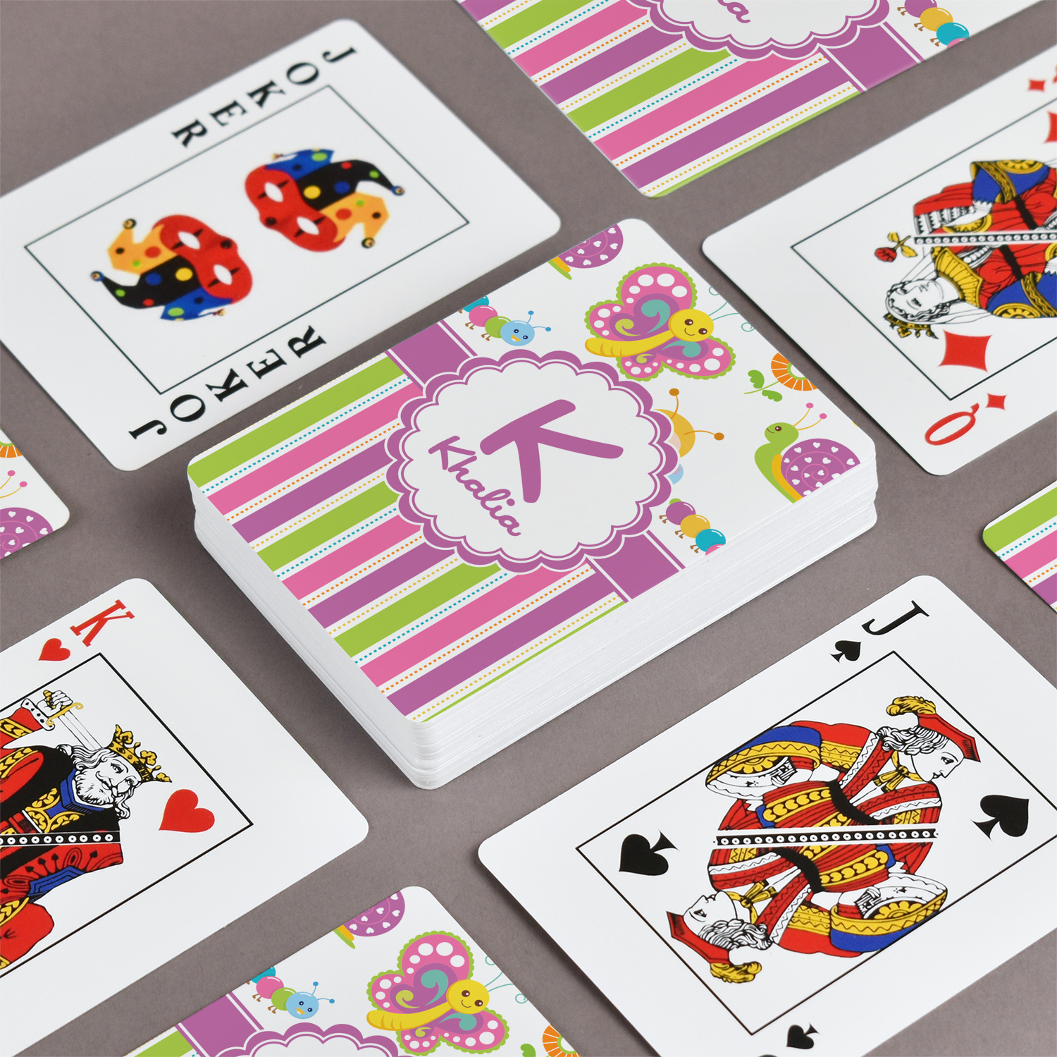 Here at YouCustomizeIt, you can customize your playing cards by uploading your own design, photo, or logo. We have design templates that you can customize by changing the patterns, colors, graphics, personalization styles, etc. - using our free for you to use in our design elements library.