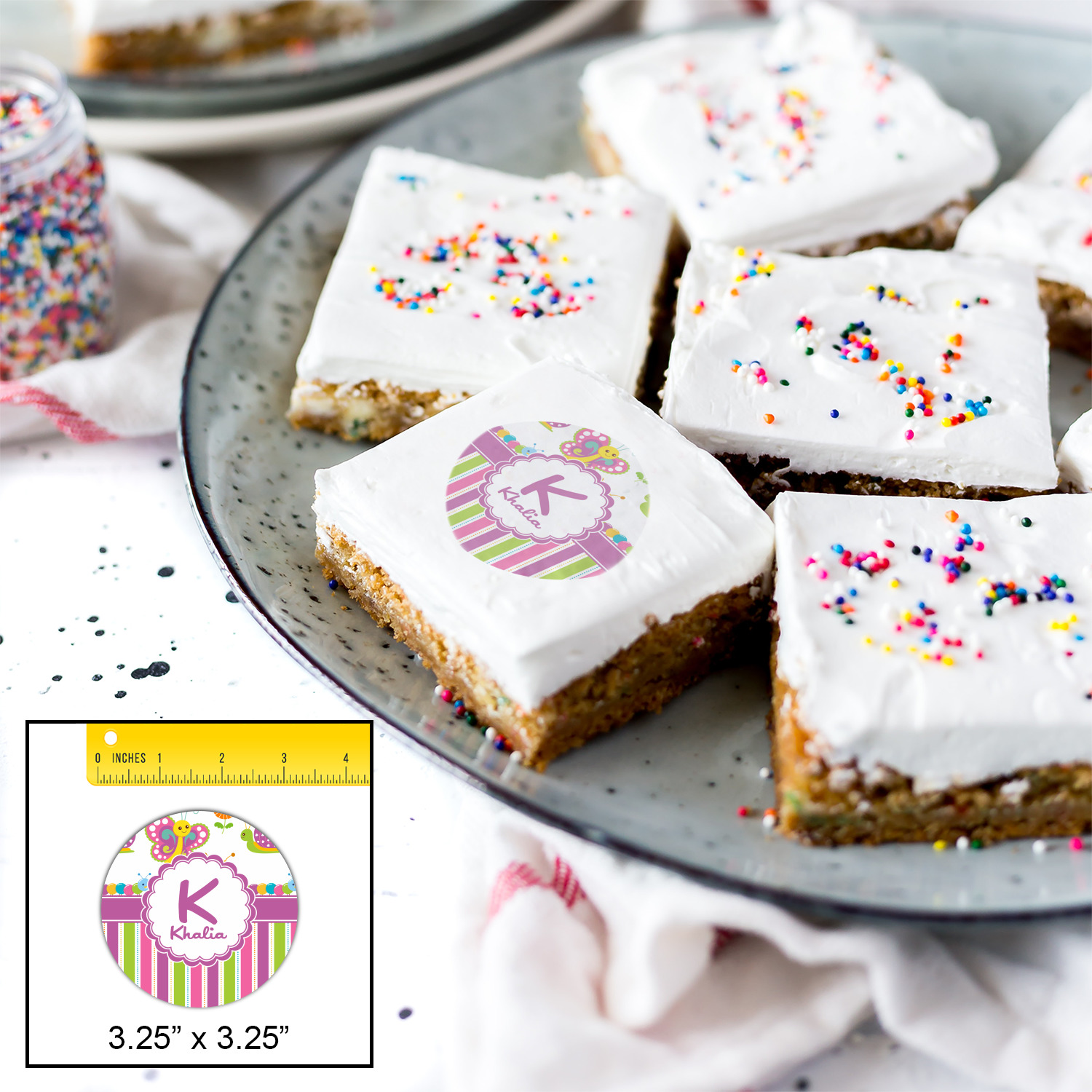 Your customized cookie toppers can be placed on top of any dessert with an icing top.The icing helps adhere the cookie topper to the dessert.