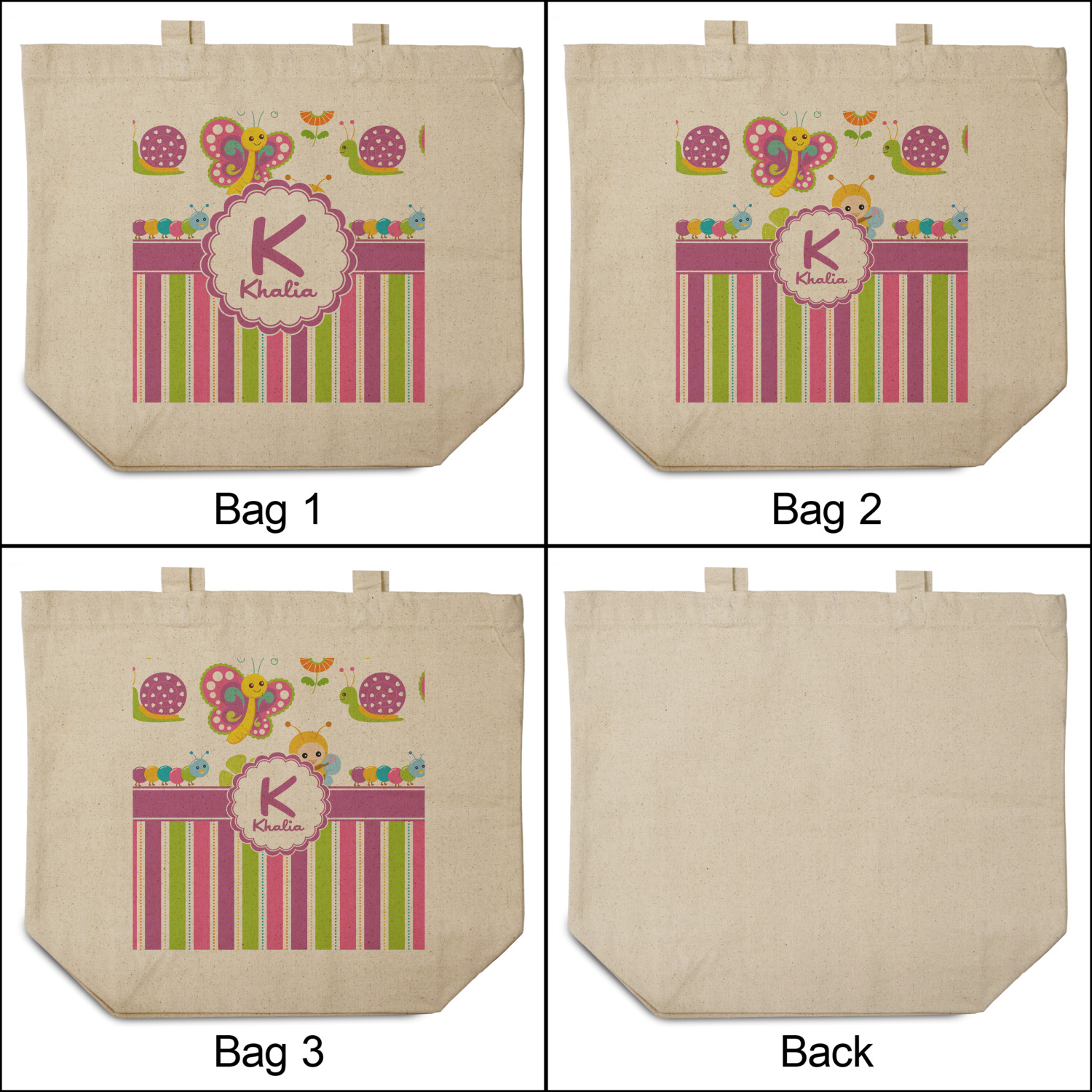 These cotton totes are washable and easy to care for, and they can be folded flat for storage. Your artwork, logo, or photo is printed in full color directly on the cotton tote in the front.