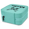 This square zippered travel jewelry box is made from leatherette and is available in four colors - classic cognac / rawhide, a beautiful teal. navy blue or pink. The tan colored soft velvet inside has compartments and hooks for all your jewelry - rings, chains, earrings, bangles etc.
