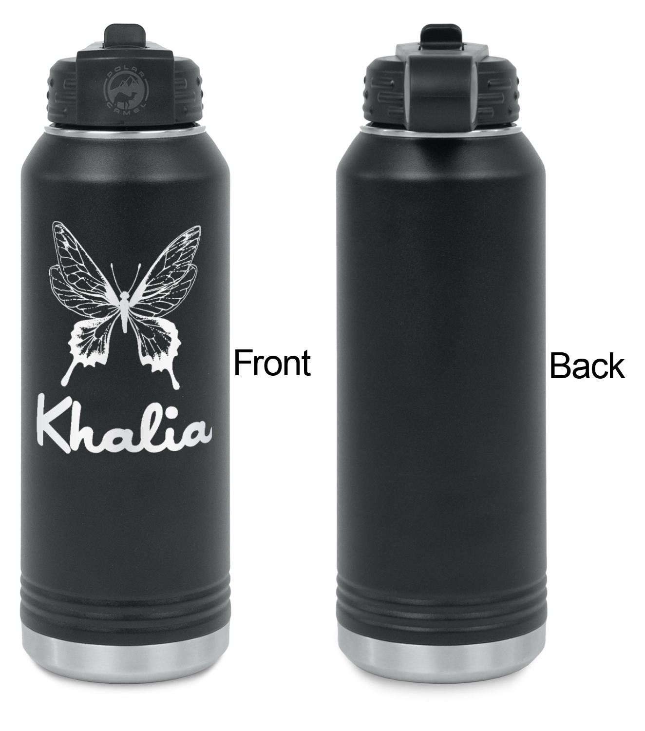 Our laser engraved stainless steel water bottles are designed for on the go lifestyle. These water bottles are perfect for the gym, the office, traveling, camping, hiking etc.