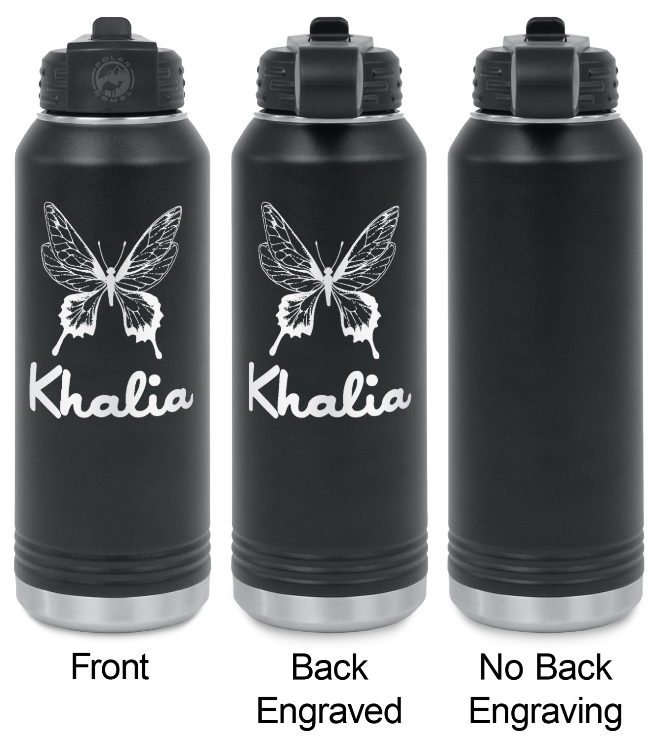 Our laser engraved stainless steel water bottles are designed for on the go lifestyle. These water bottles are perfect for the gym, the office, traveling, camping, hiking etc.