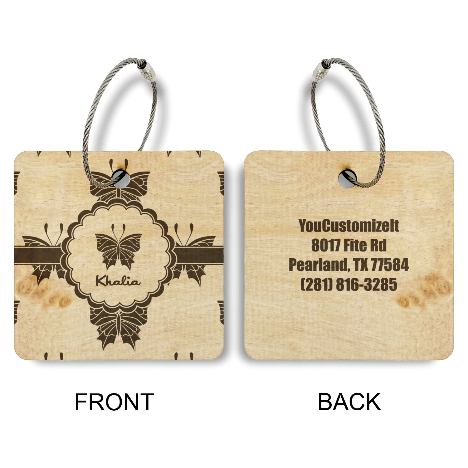 Made from a premium hardwood, these luggage tags are laser engraved and cut just for you. The front contains your design of choice and the back has your contact information to ensure your luggage gets back to you if ever lost.