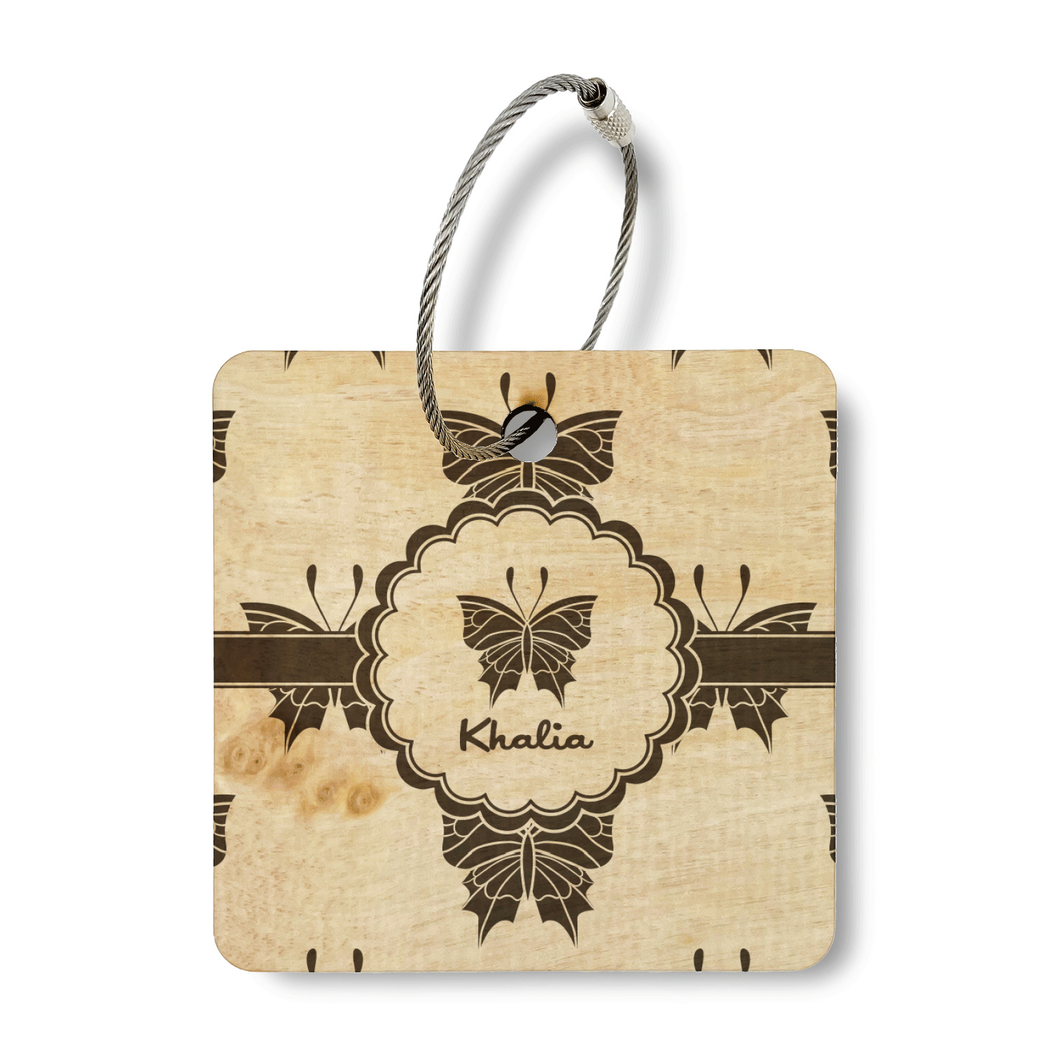 The wood has a durable hard-wax oil finish on it to ensure a lasting sheen and durable finish. The wire rope keychain has a strong screw latch to ensure the tag stays secure to your luggage.