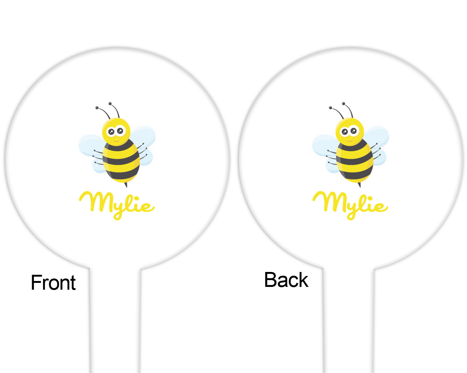 The round disc on these food & drink picks can be customized and personalized to your specifications. Your image will be printed in full color on one side or both sides. You can use the same image on both sides or use two different images.