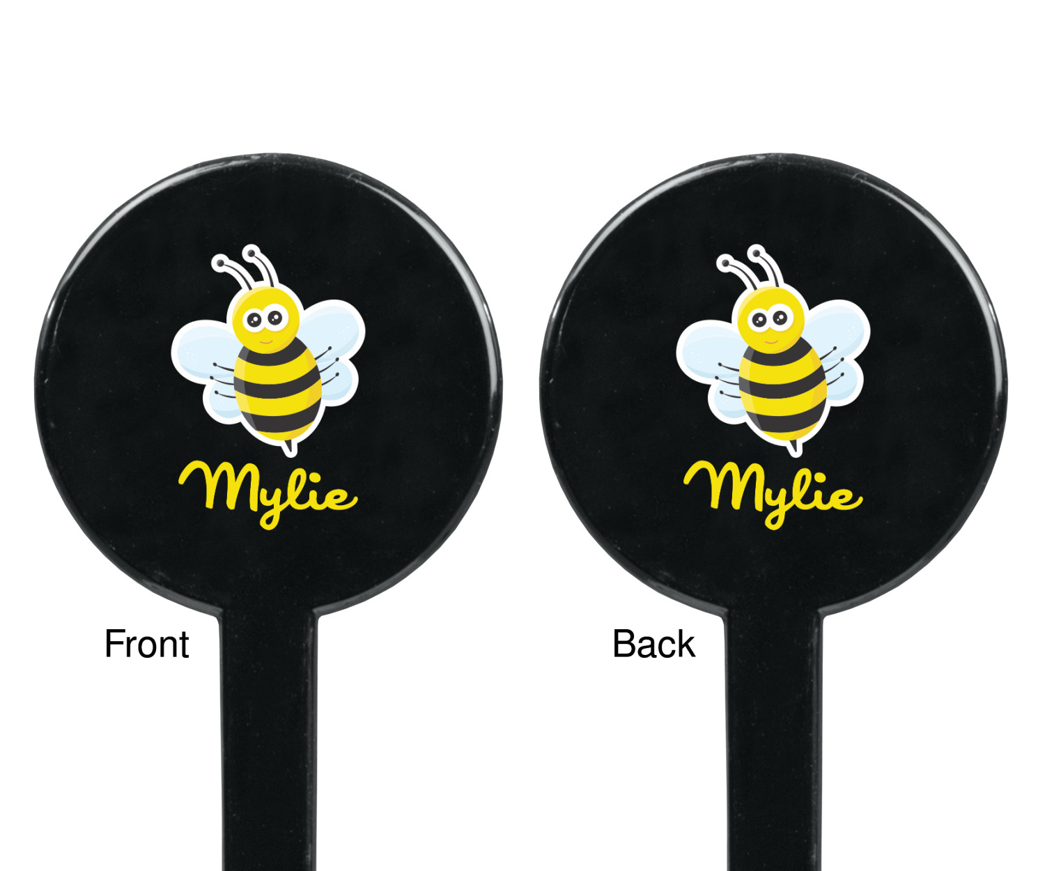 A wide white trimmed black ribbon is the background for a sweet little line of bees. A white decorative label that is trimmed in double rows of black will provide the focal point for either a little bumble-bee or a bumble-bee obsessed girl and his/her name. As a special touch, you can personalize your little bumble-bee girl's hair and skin color.