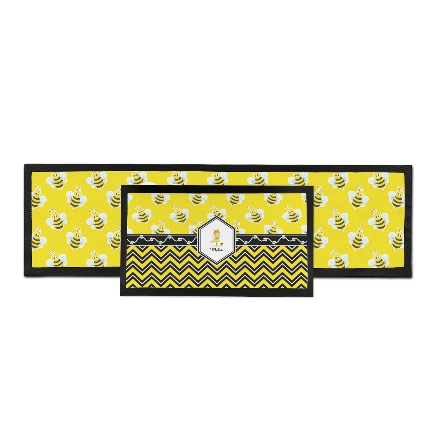 No stings here, just nothing but smiles with these bumble bees. This is the sweetest design and can be used for both boys and girls. The traditional yellow and black bumble bee has been modernized with the very popular chevron pattern. We have created this gorgeous and bold yellow, black and white chevron pattern on bottom but grounded this bold pattern with our sweet little bumble bees on top.