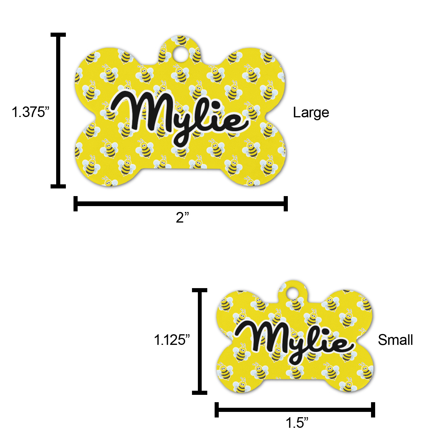 The small bone dog tag size is perfect to pair with our small dog collars, the large size pairs well with our large dog collars.