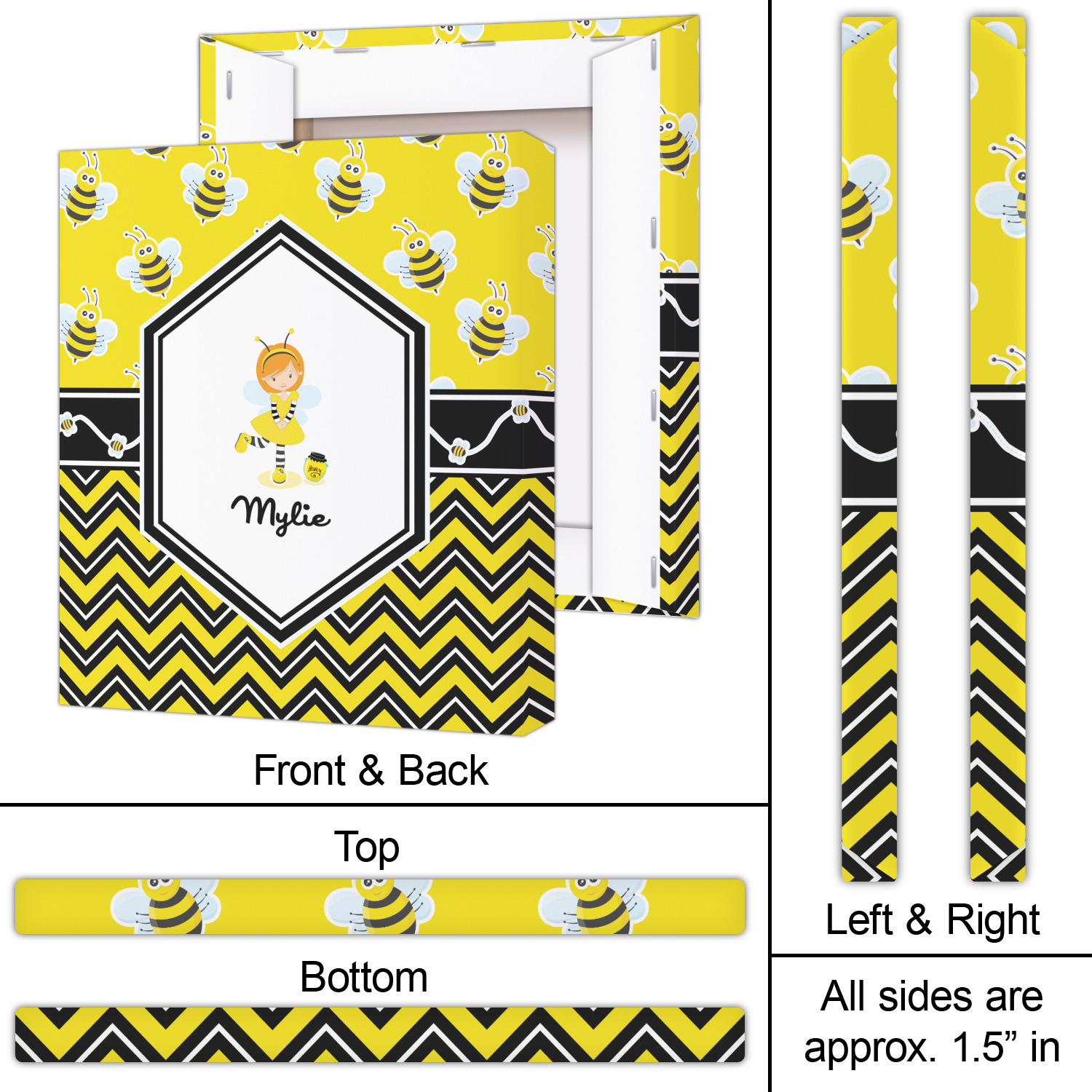 No stings here, just nothing but smiles with these bumble bees. This is the sweetest design and can be used for both boys and girls. The traditional yellow and black bumble bee has been modernized with the very popular chevron pattern. We have created this gorgeous and bold yellow, black and white chevron pattern on bottom but grounded this bold pattern with our sweet little bumble bees on top.