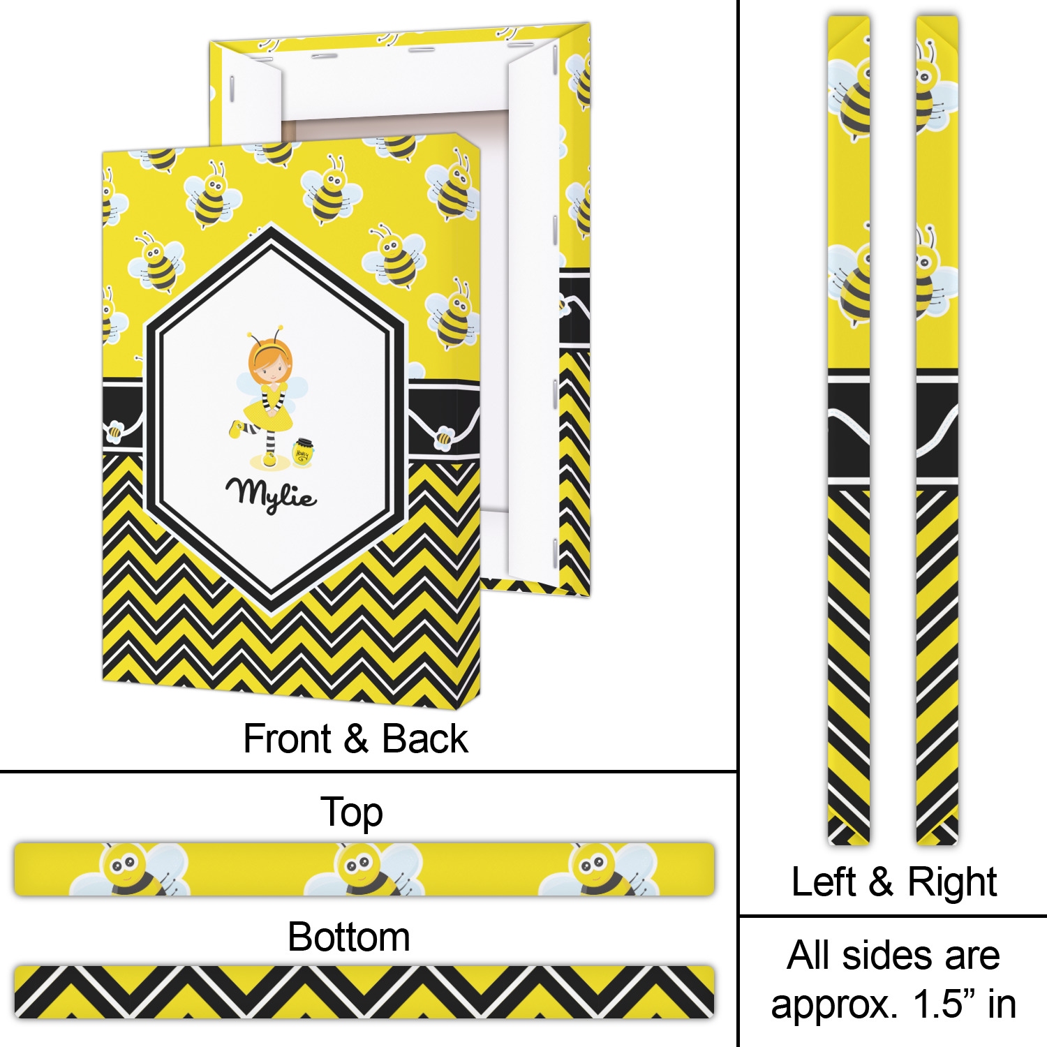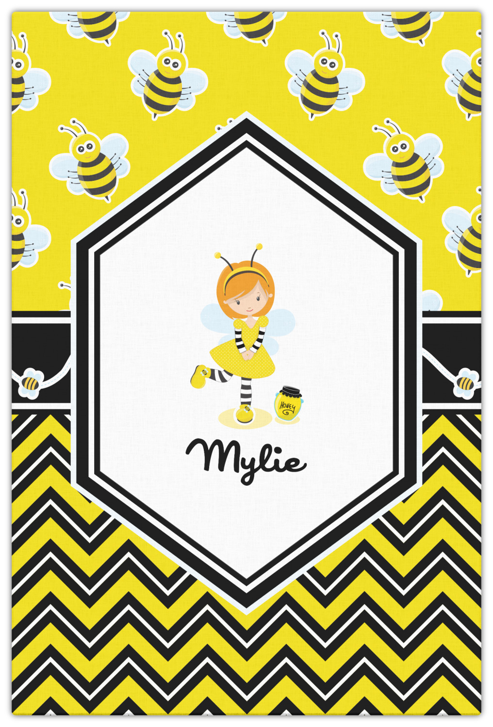 No stings here, just nothing but smiles with these bumble bees. This is the sweetest design and can be used for both boys and girls. The traditional yellow and black bumble bee has been modernized with the very popular chevron pattern. We have created this gorgeous and bold yellow, black and white chevron pattern on bottom but grounded this bold pattern with our sweet little bumble bees on top.