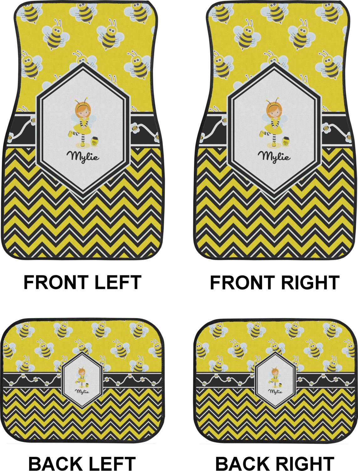 We craft our auto floor mats mats from polyester, apply a black finish to the edges, and lined at the bottom to prevent slippage. These mats protect your floors from grass, mud, and any accidental spills. We display your personalized design on the front face of each mat. The sizes of these car floor liners are standardized to provide a versatile fit for all vehicles. The front rows car mats measure at 17 by 26.5 inches, while the back rows measure at 17 by 13 inches. We sell three packages of car floor mats. You can purchase a pair of front row car mats, a pair of back row car mats, or a set of front row and back row car mats. To make an informed purchase, we recommend measuring the surface area of your car floors.