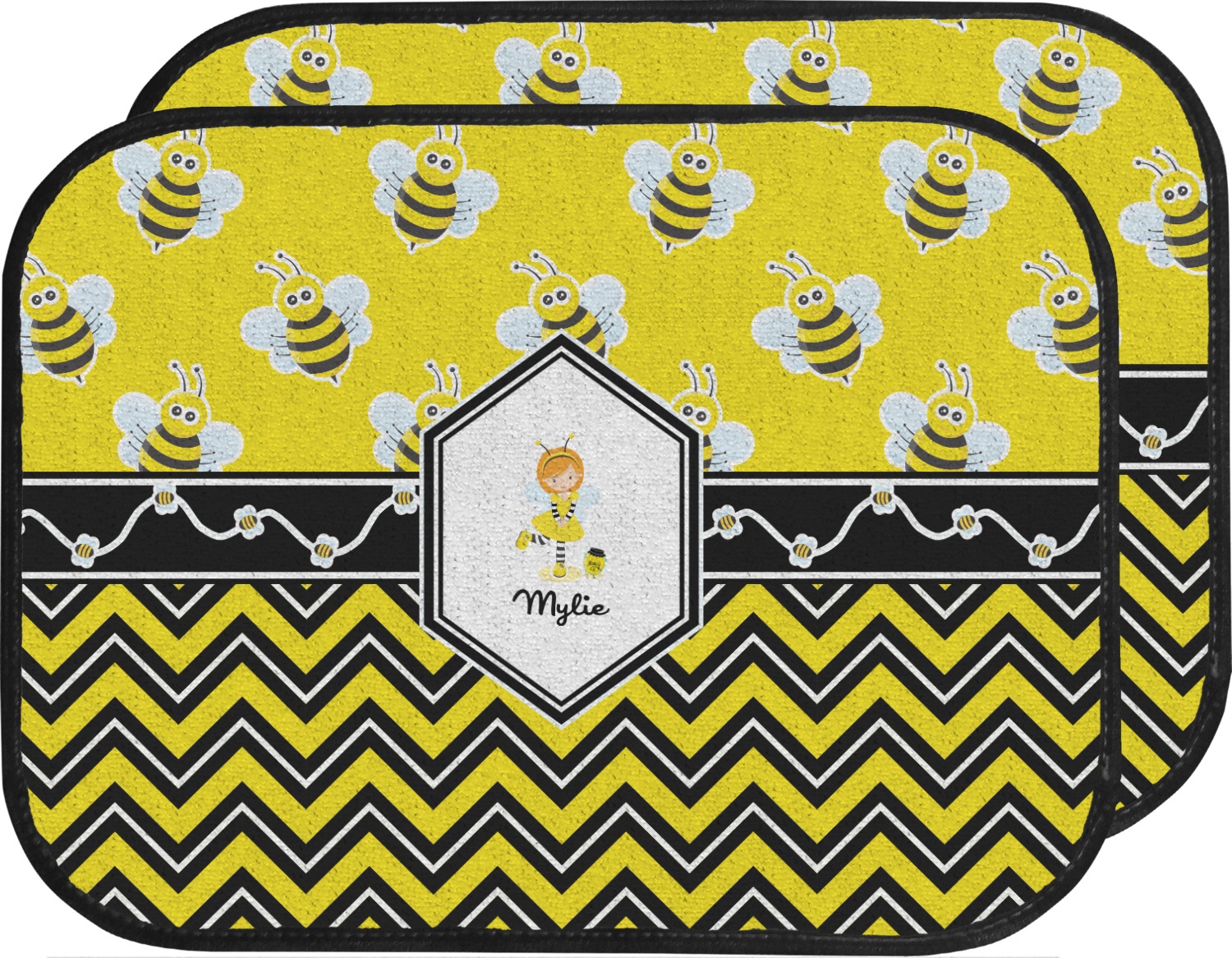No stings here, just nothing but smiles with these bumble bees. This is the sweetest design and can be used for both boys and girls. The traditional yellow and black bumble bee has been modernized with the very popular chevron pattern. We have created this gorgeous and bold yellow, black and white chevron pattern on bottom but grounded this bold pattern with our sweet little bumble bees on top.