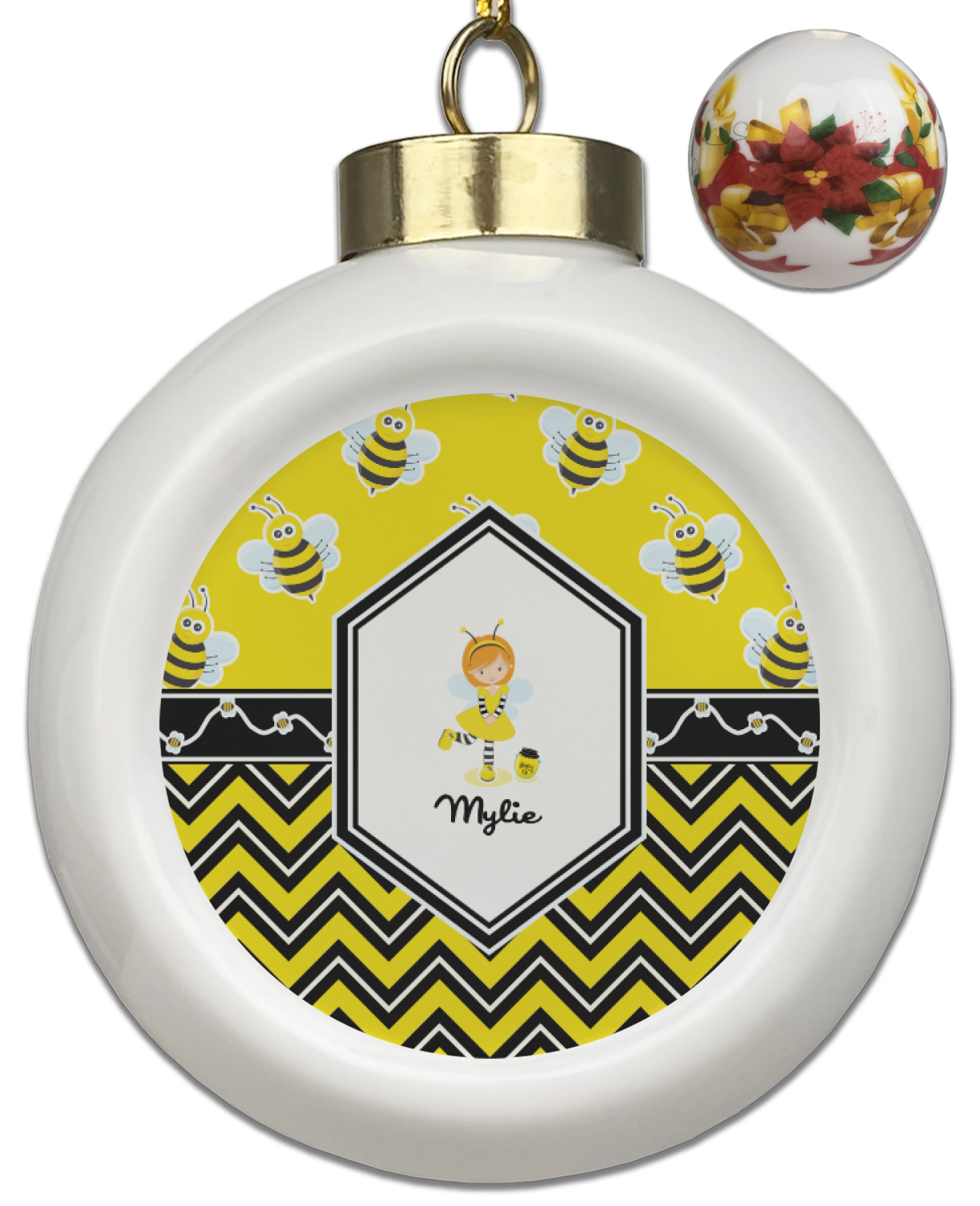 Our Christmas ornaments are a unique ceramic ball shape with a twist as it has a flat face to display your custom design! Select from one of our two design types - Christmas Tree or Poinsettia Garland - to adorn the curved back of your personal design. Each ornament measures 3H x 2.5W x 2D accompanied with a gold string accent for finishing touches to hang on your beautiful Christmas tree!