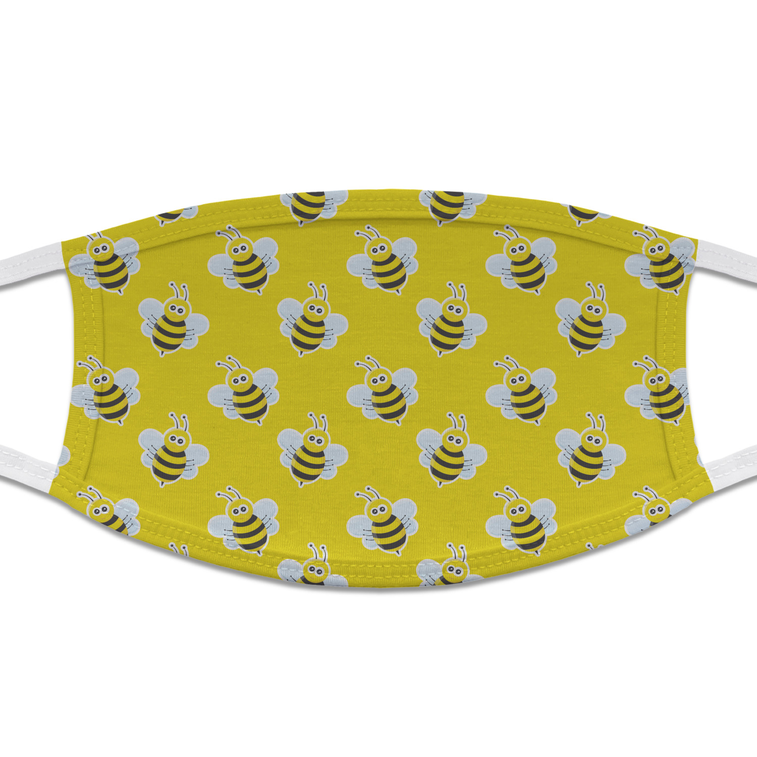The masks are made from two layers of the soft jersey fabric. The outside layer will be printed with your design, while the inside layer is white. The body of the mask is trimmed and double stitched with the same jersey fabric. The masks are approximately 7 inches wide by 4.75 inches high