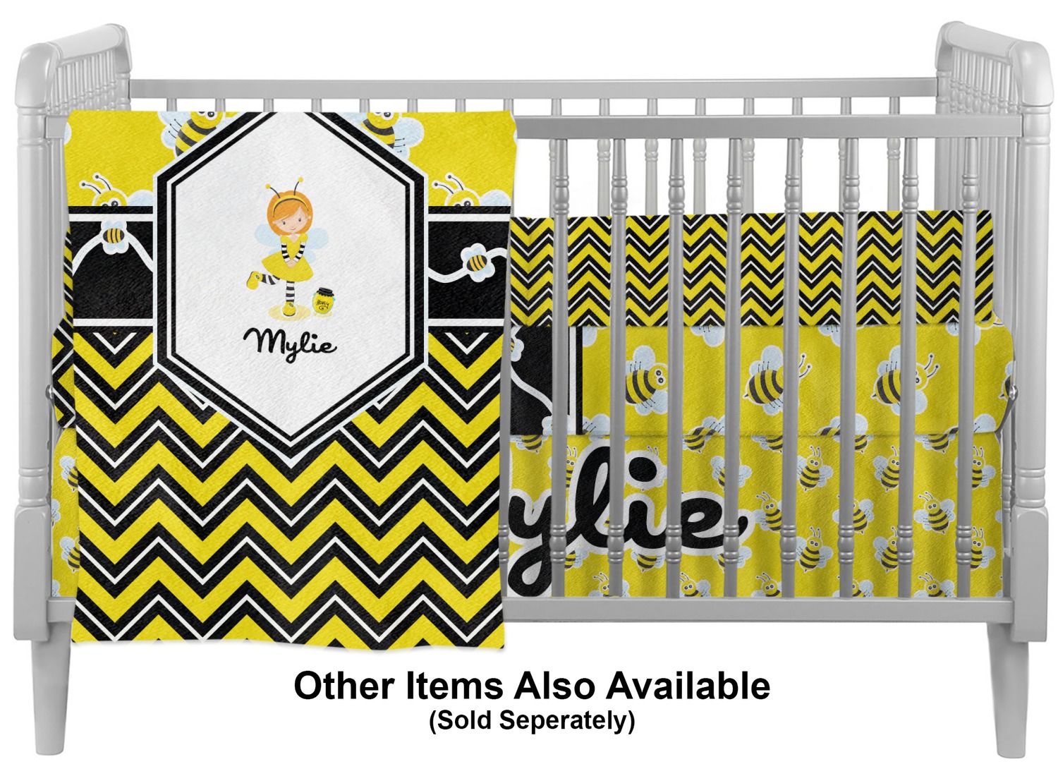 No stings here, just nothing but smiles with these bumble bees. This is the sweetest design and can be used for both boys and girls. The traditional yellow and black bumble bee has been modernized with the very popular chevron pattern. We have created this gorgeous and bold yellow, black and white chevron pattern on bottom but grounded this bold pattern with our sweet little bumble bees on top.