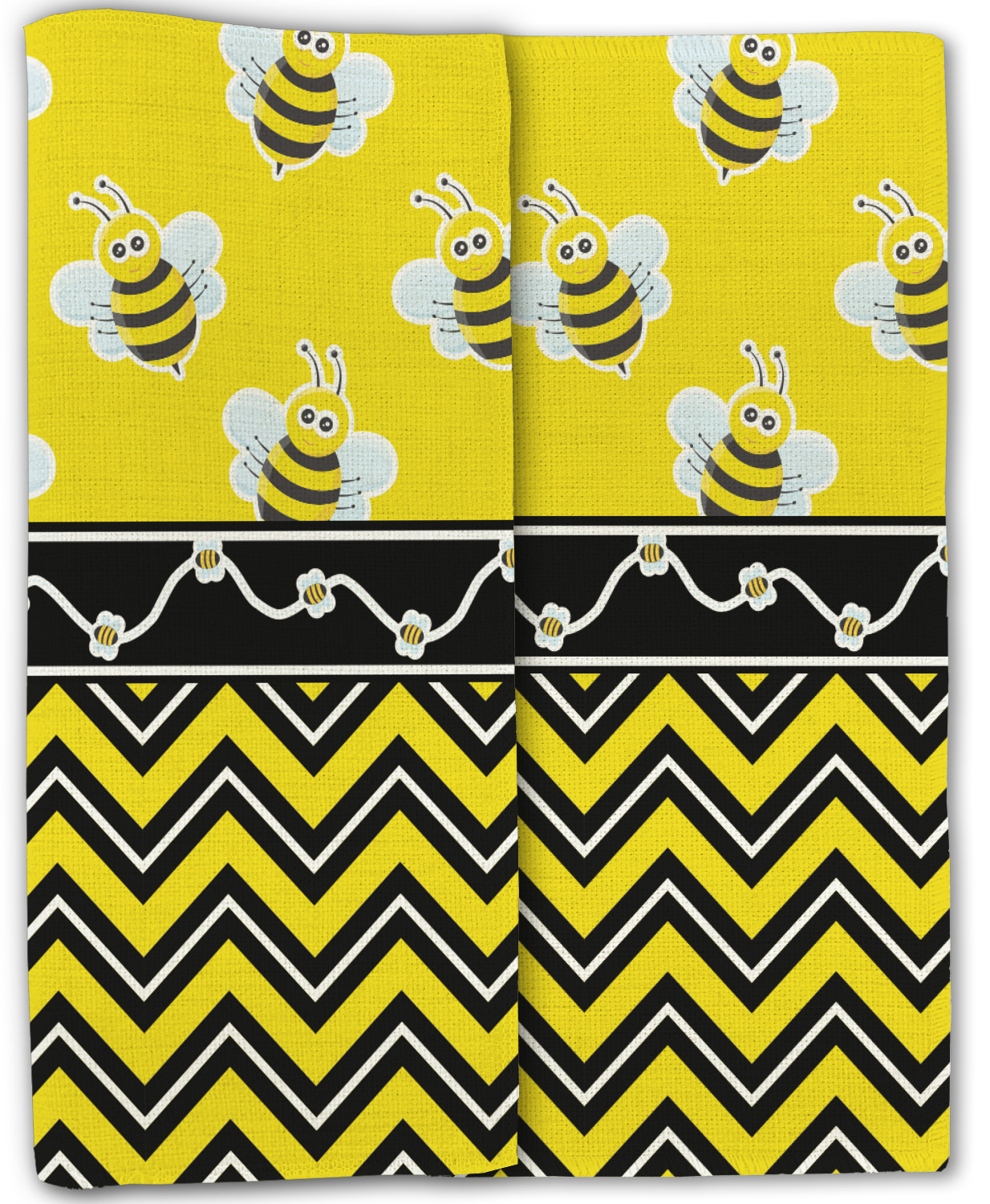 No stings here, just nothing but smiles with these bumble bees. This is the sweetest design and can be used for both boys and girls. The traditional yellow and black bumble bee has been modernized with the very popular chevron pattern. We have created this gorgeous and bold yellow, black and white chevron pattern on bottom but grounded this bold pattern with our sweet little bumble bees on top.