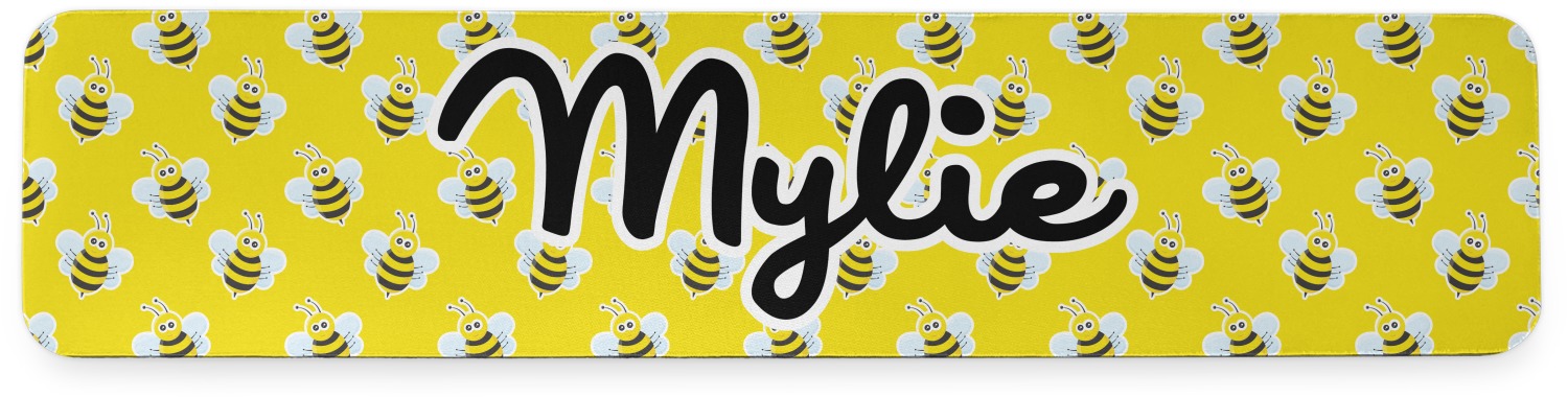 A wide white trimmed black ribbon is the background for a sweet little line of bees. A white decorative label that is trimmed in double rows of black will provide the focal point for either a little bumble-bee or a bumble-bee obsessed girl and his/her name. As a special touch, you can personalize your little bumble-bee girl's hair and skin color.