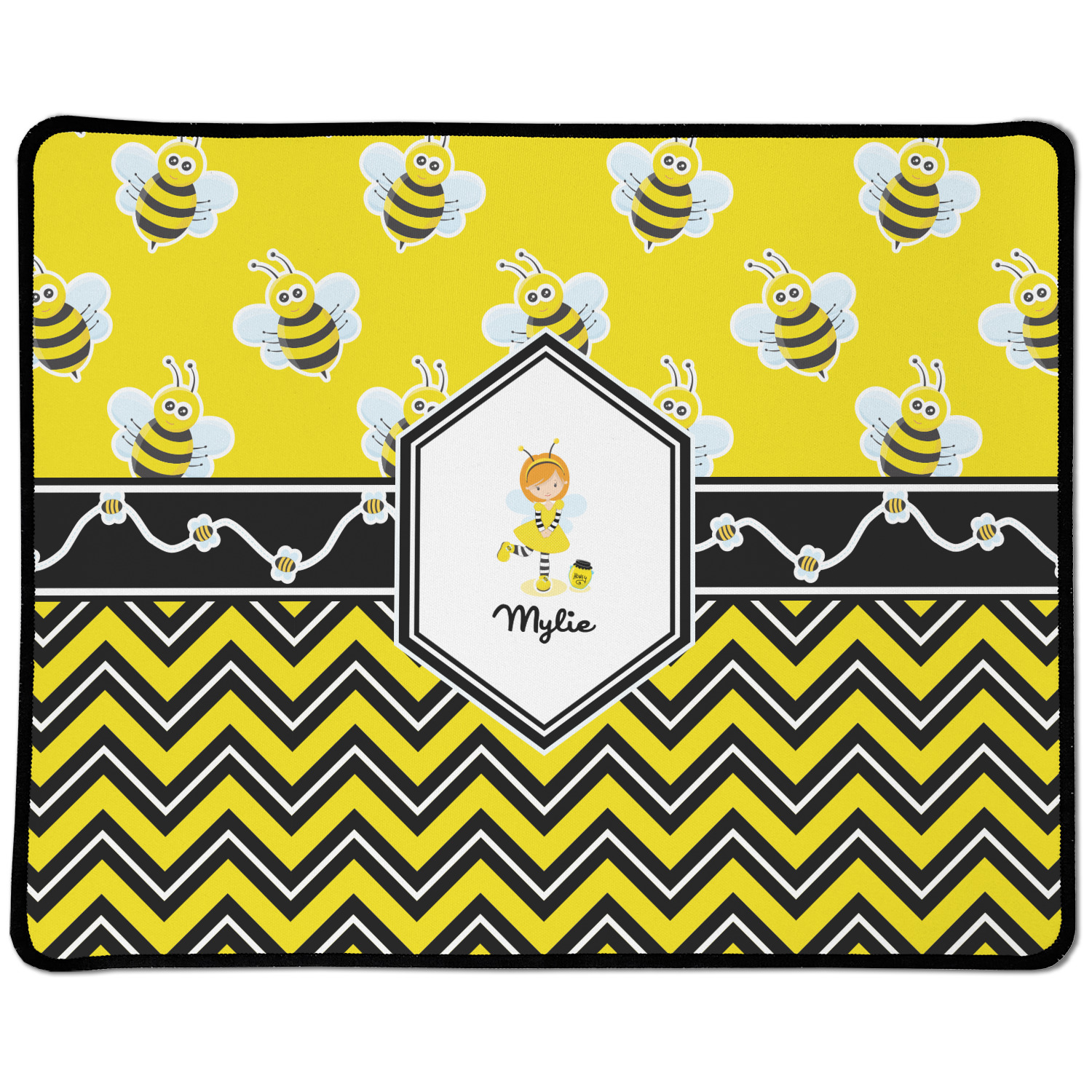 No stings here, just nothing but smiles with these bumble bees. This is the sweetest design and can be used for both boys and girls. The traditional yellow and black bumble bee has been modernized with the very popular chevron pattern. We have created this gorgeous and bold yellow, black and white chevron pattern on bottom but grounded this bold pattern with our sweet little bumble bees on top.