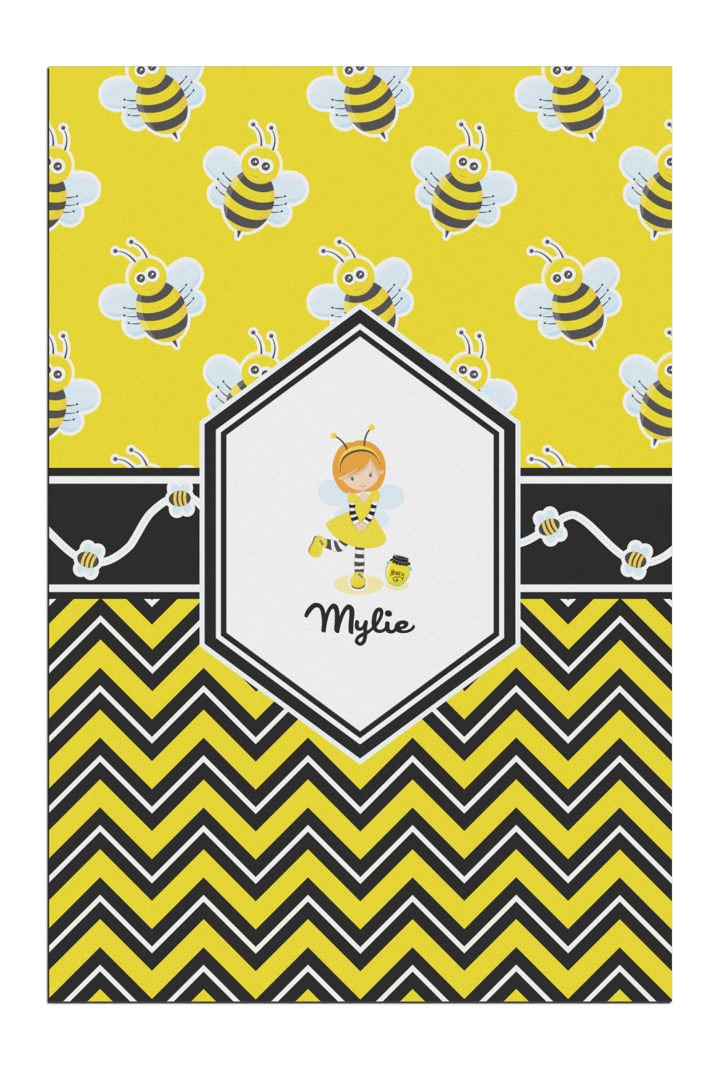 No stings here, just nothing but smiles with these bumble bees. This is the sweetest design and can be used for both boys and girls. The traditional yellow and black bumble bee has been modernized with the very popular chevron pattern. We have created this gorgeous and bold yellow, black and white chevron pattern on bottom but grounded this bold pattern with our sweet little bumble bees on top.