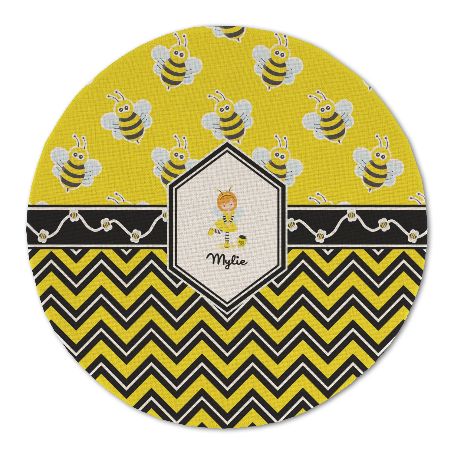 No stings here, just nothing but smiles with these bumble bees. This is the sweetest design and can be used for both boys and girls. The traditional yellow and black bumble bee has been modernized with the very popular chevron pattern. We have created this gorgeous and bold yellow, black and white chevron pattern on bottom but grounded this bold pattern with our sweet little bumble bees on top.