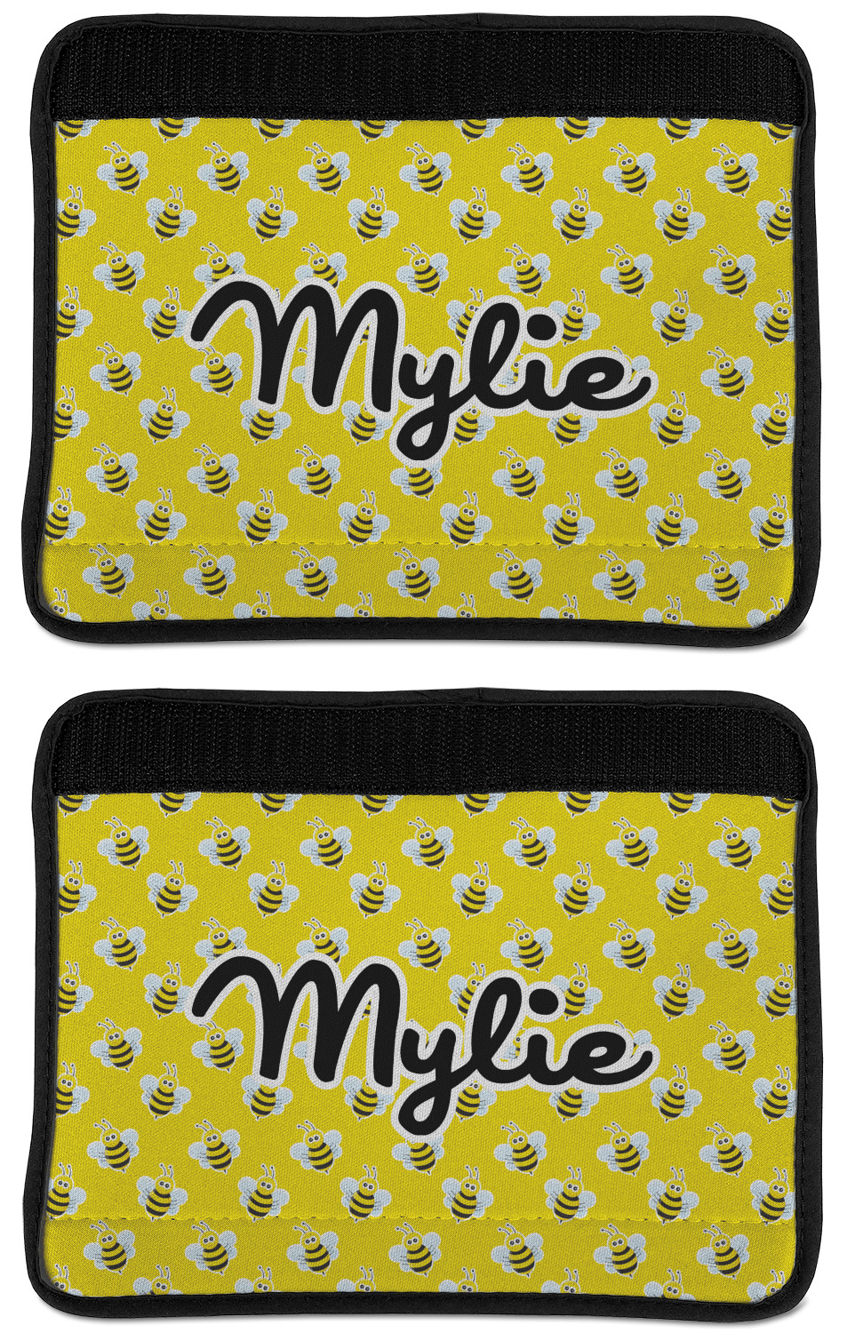 Made from neoprene, our seat belt strap covers wrap around the belt itself and have a Velcro tab for easy attachment and closure. The belt's edges are trimmed with a black polyester for a secure finish. Each cover is 9.5 by 7 inches when open and 9.5 by 2.5 inches when closed. We print your personalized design on the face of the seat belt pad.