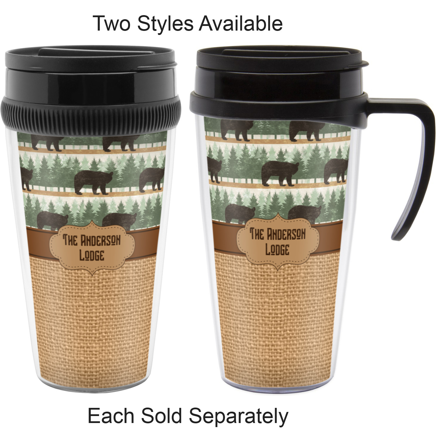 These thermal mugs are free of BPA, and insulated, to keep your drinks hot or cold. The black, snap on lid and the slider for sipping allows you to conveniently sip your drink without constantly worrying about a disastrous spill. We offer this mug with and without a handle, to better suit your needs. Each custom thermal mug holds up to 16 ounces of liquid and displays your customization on all sides on premium gloss media inserts.