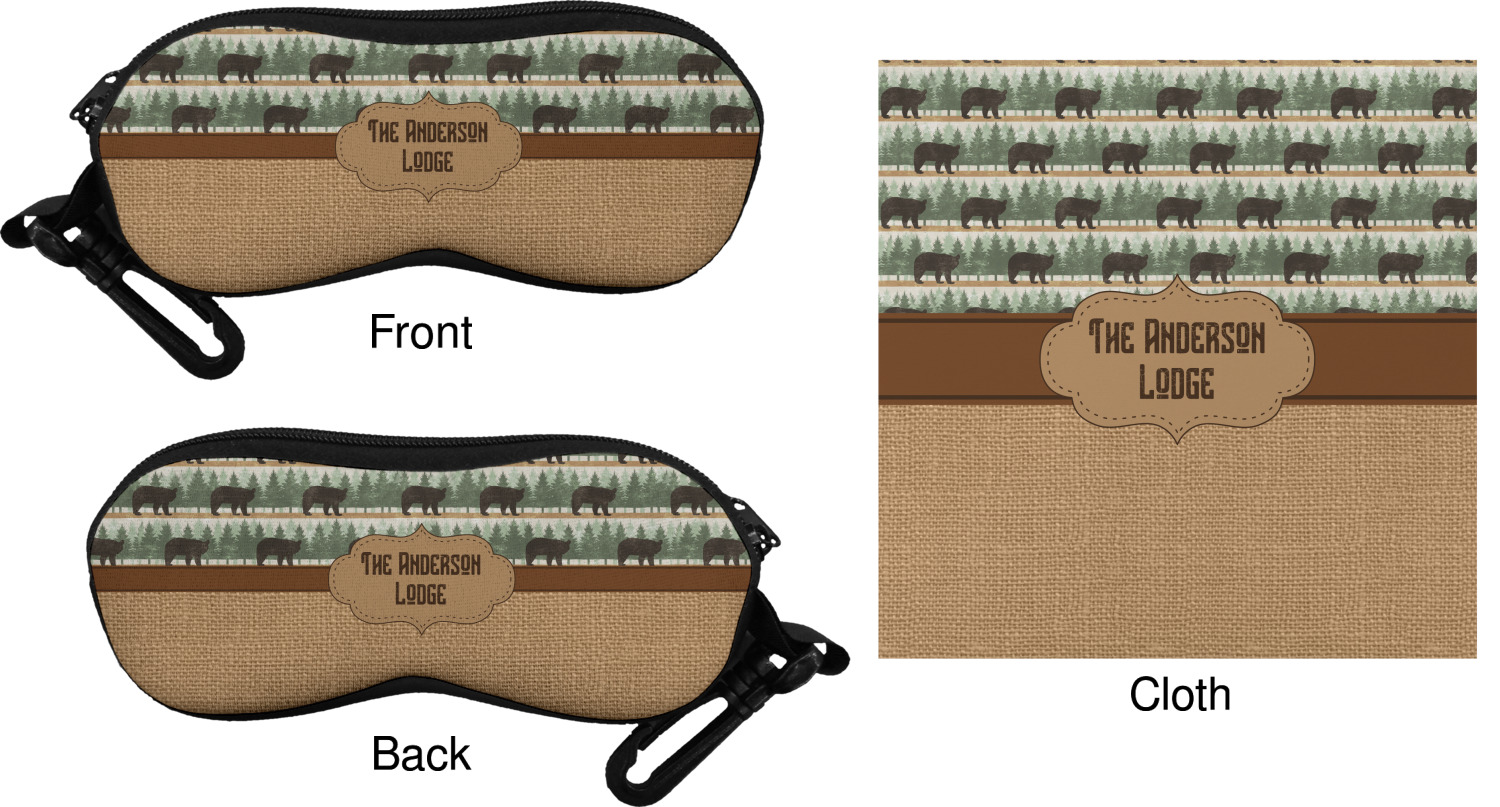 The cases have the design on both sides, a black zipper, and clips for hanging on a belt buckle or purse strap and also include matching lens cloths.