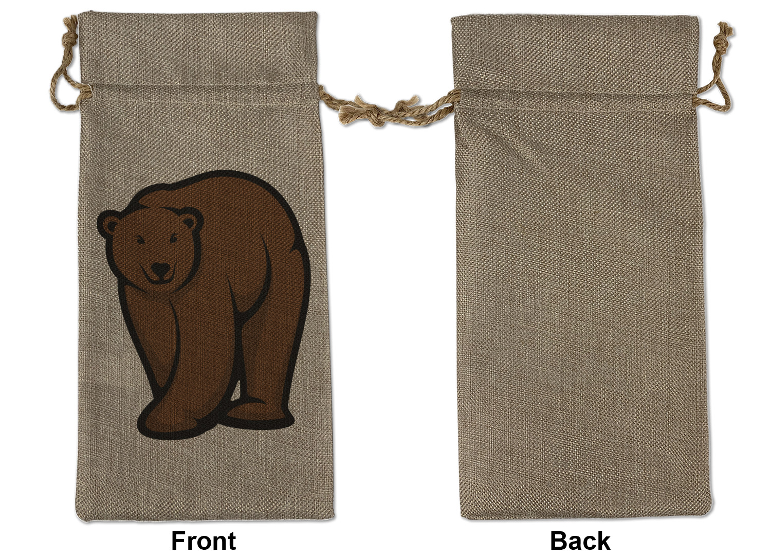 We sell our Burlap Gift Bags in 3 variant sized bags. Made with burlap polyester, each personalized bag can be secured with a twine drawstring pull. Your custom design is available to print on one side or both sides - completely up to you! The sizes of the bags measure approximately 4.5" x 6.5" for the smallest size, 6.5" x 8.0" for the medium size, and 6.5" x 13.5" for the large-sized bag.