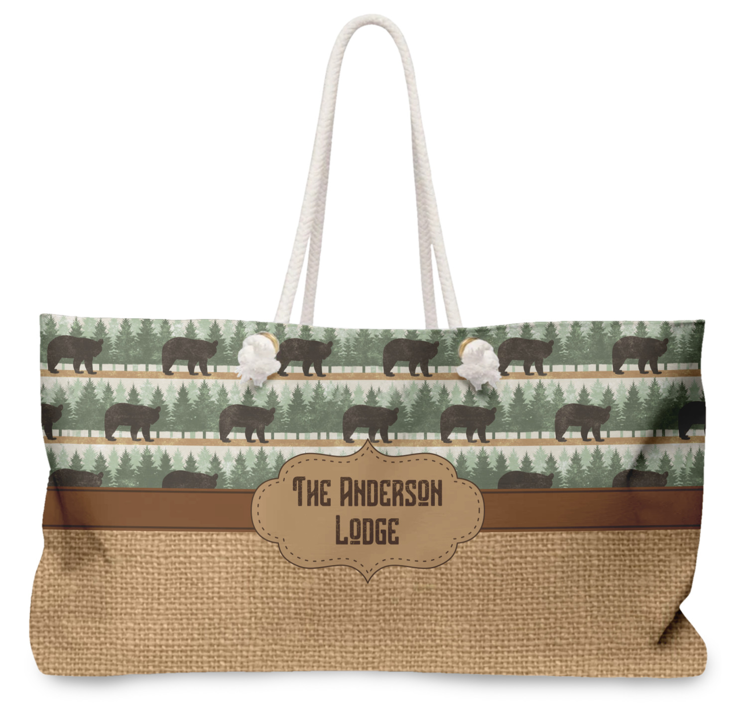 Our oversized weekender tote with rope handles is perfect for your weekend at the beach or on the town. This large tote are 24" W X 13" H, with a 5" gusset and a 27" thick rope handles with a knot that is put through a grommeted brass hole.