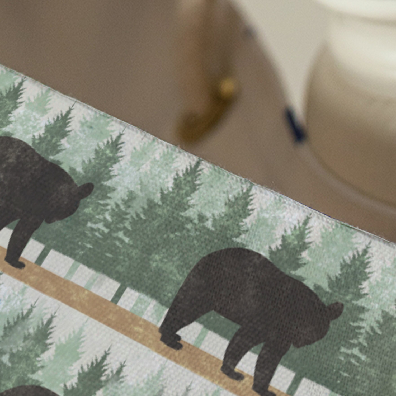 This design has a lovely earthy color palette of greens and browns. Bears being the main focal point of this design really give it a woodsy feel. The brown bear graphics are easily interchangeable. You can even change his color!