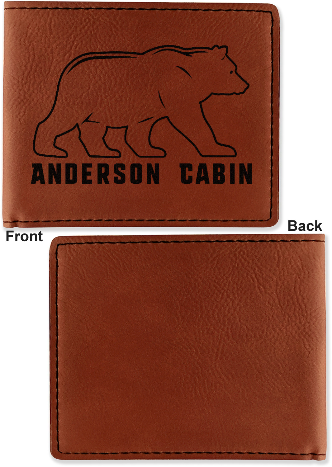 Your bifold wallet will be personalized by laser engraving, which will be a black color on the wallet. Choose a graphic, text, or monogram to personalize your wallet. There are thousands of choices in our design center.