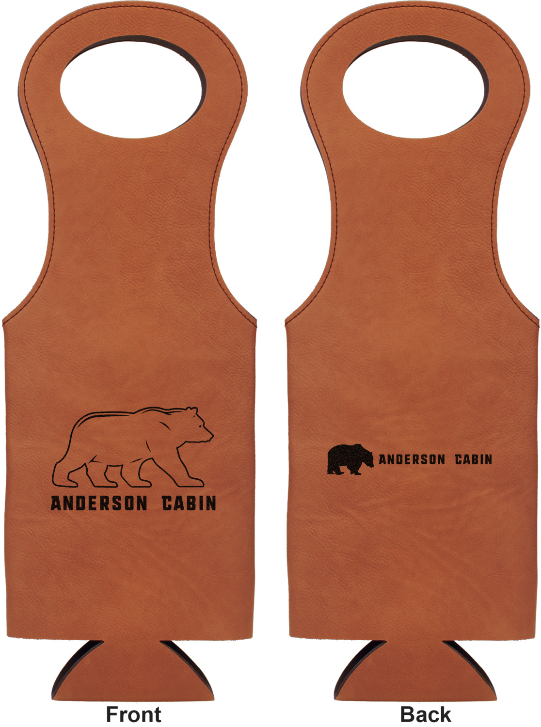 This wine carrier is made from a stunning leatherette, in a cognac-brown color. Strong, black stitching lines the sides of your wine bottle bag and provides extra durability. The interior is lined with a padded, black material to allow for a snug fit once your bottle is placed inside. At the top of this wine gift bag, you'll find two oval shaped handles that elegantly complements the rest of the bag's style. We provide you with the option of laser-engraving the front, or the front and back of your new personalized wine bag!