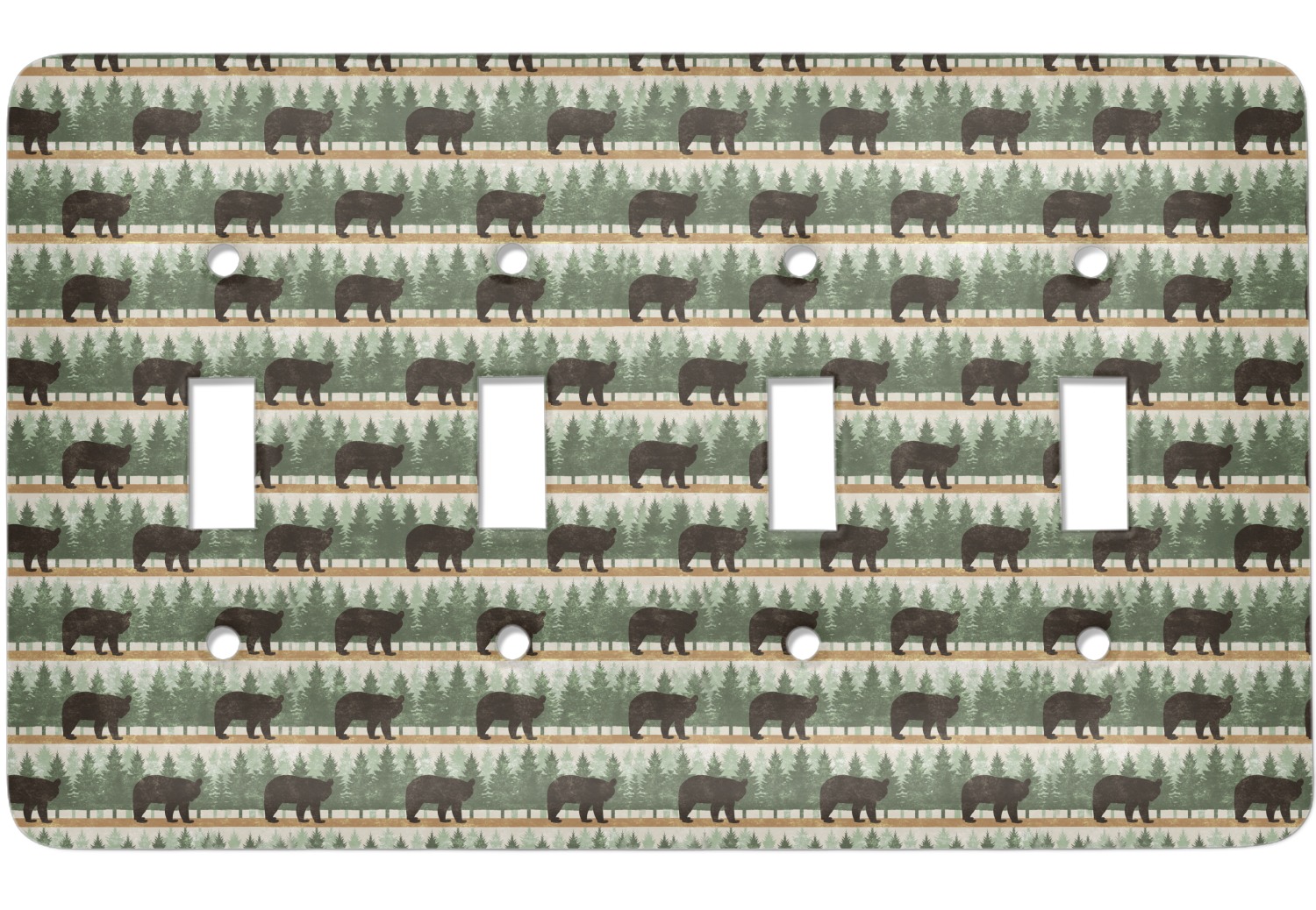 This design has a lovely earthy color palette of greens and browns. Bears being the main focal point of this design really give it a woodsy feel. The brown bear graphics are easily interchangeable. You can even change his color!