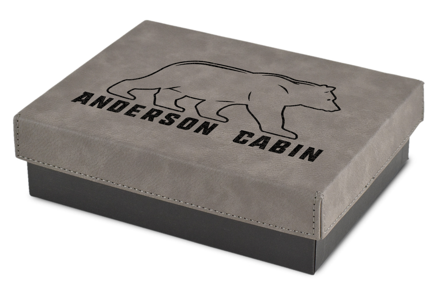 These gift boxes are available in 3 different sizes to accommodate various sized gifts. Available in gray as a neutral color for any occasion as well as to showcase your design boldly. Engraved with a laser this high quality paper board and faux leather gift box is unique and makes any gift stand out.