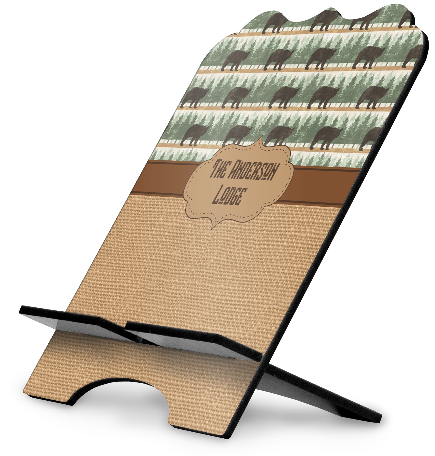 The stand is comprised of two hardboard pieces that fit snugly together and stabilize one another. The bottom part of the iPad stand supports your tablet, and has space for your tablets charger while in use. At 9.25" x 11.5", this tablet mount can support a device between the sizes of the iPad Pro and the iPad Mini 2. The uppermost part of the stand features a decorative, curved edge for a classy, suave appearance. We print your customization atop the face of the stand, in vibrant color. The remaining sides are colored a sleek black.