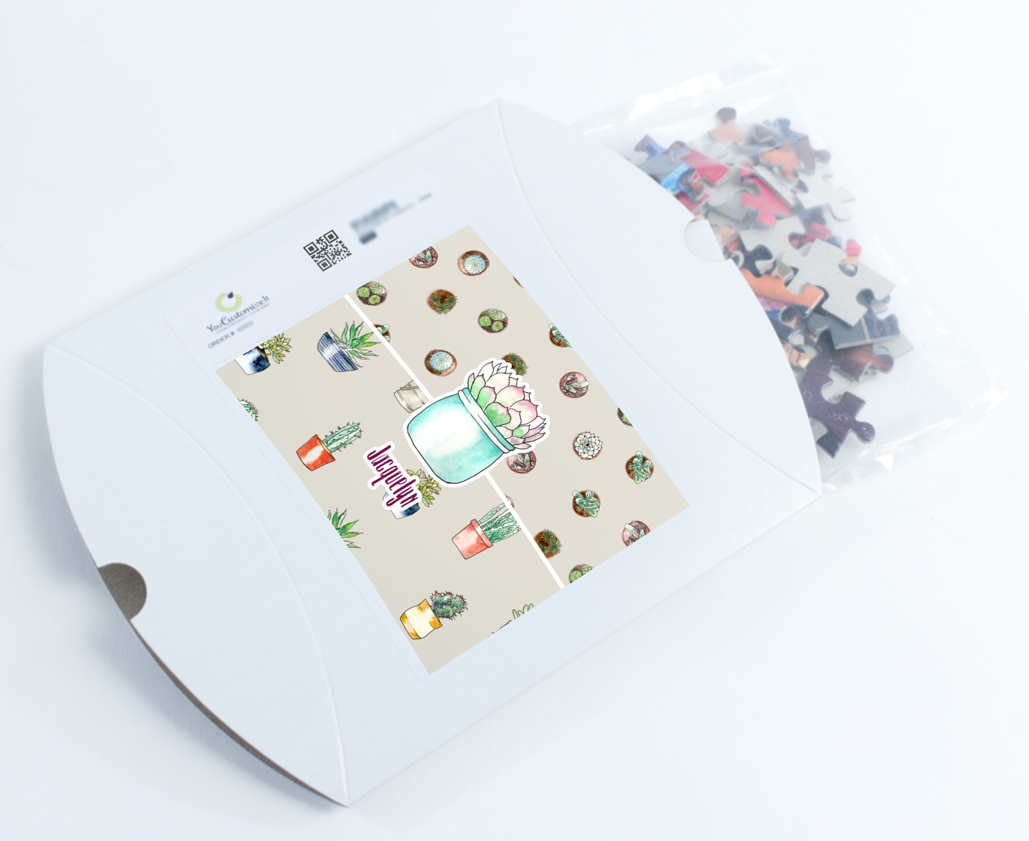 You can also upload your logo or art that you or your kids drew. To create more challenging jigsaw puzzles, you can create a pattern from with your logo or artwork. You can also add other elements such as text or personalization.