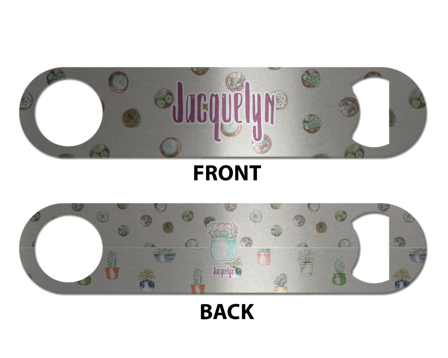 Stop struggling with the caps or your bottled beverages by purchasing one of our personalized bottle openers! These wrench-like custom bar blades are built to last. Customize one for your home's bar, or as a practical gift for a loved one!