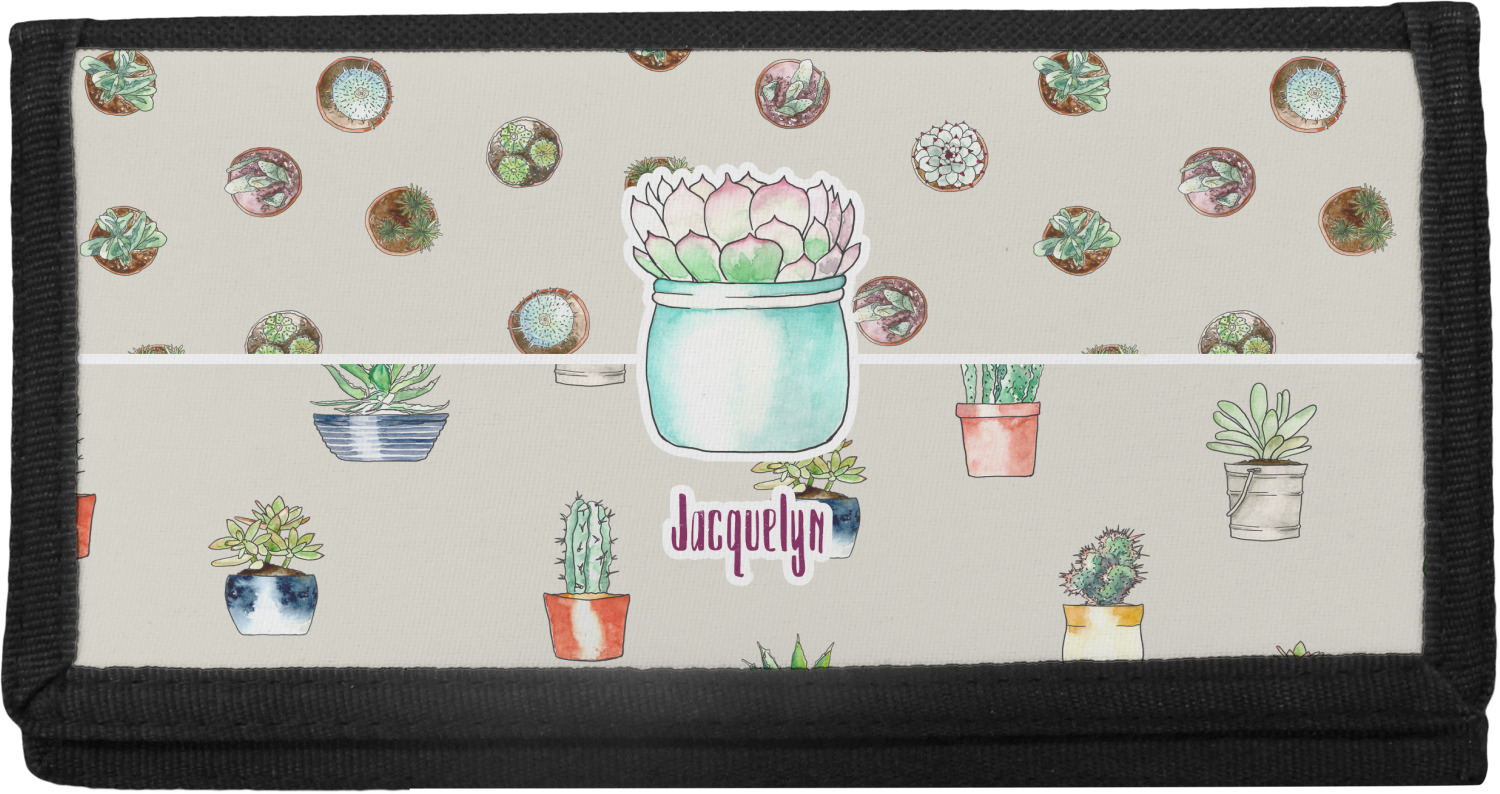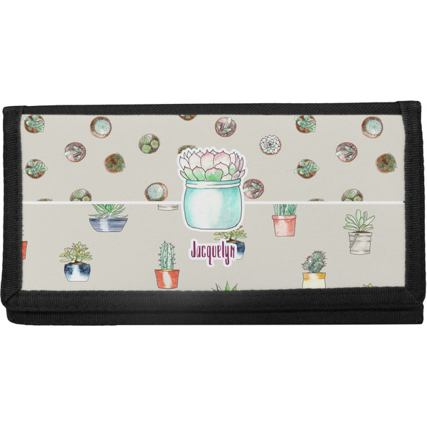 The checkbook cover is made of a durable canvas and the front flap is decorated with a vibrant design of your choosing. With 4 slots for credit cards or IDs, and 2 compartments for your checkbook register, cash, receipts, business cards, and more; this checkbook cover could easily double as a wallet.