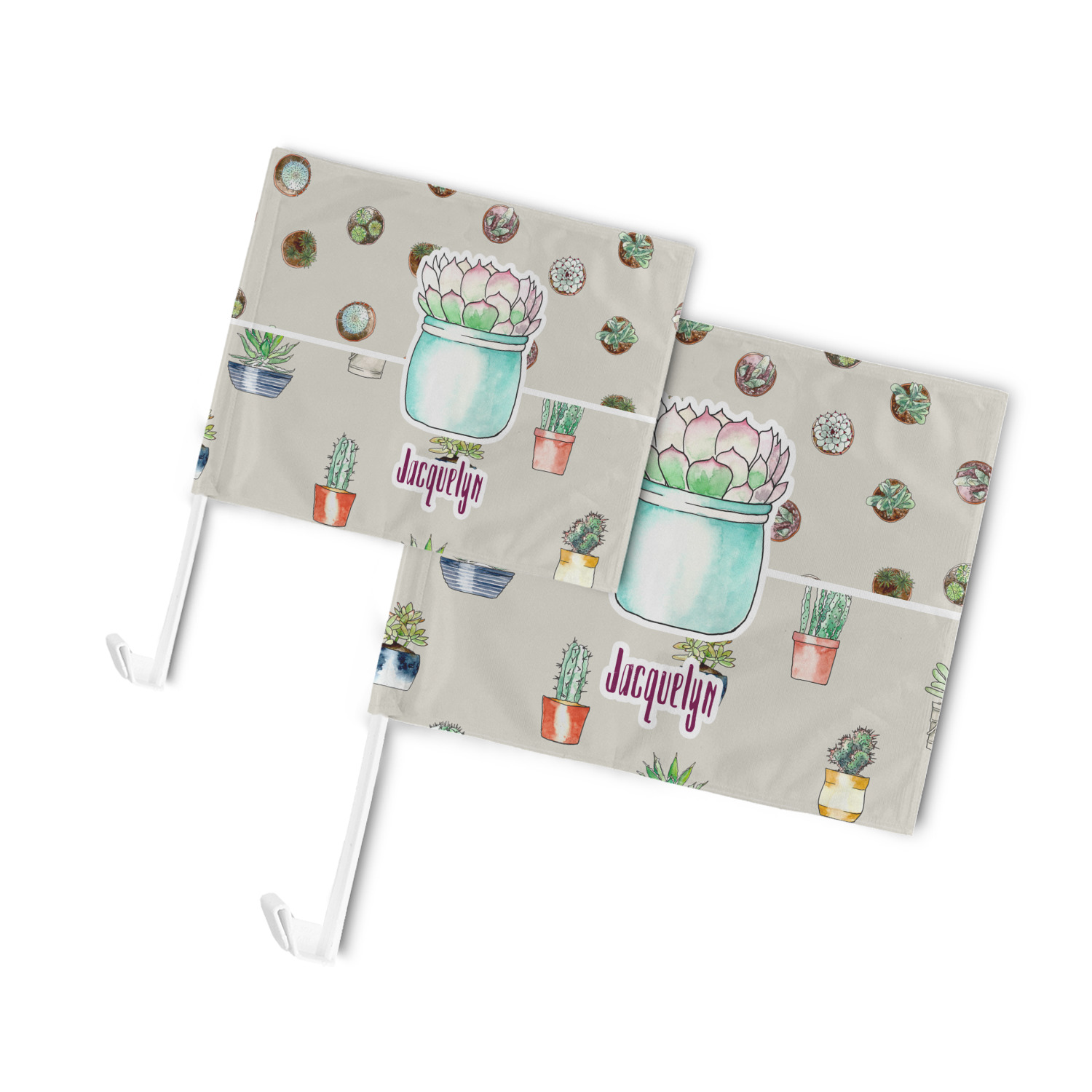 Our personalized flags are made from a durable, yet lightweight cloth that will proudly bear your logo or design of choice, while withstanding the outside elements. We have two size options - 8" x 11" and 11" x 15". Both come with a flag pole which includes a clip that secures the pole to the side window, whether it is rolled up or down. The flags are printed on both sides to display your design from all directions.