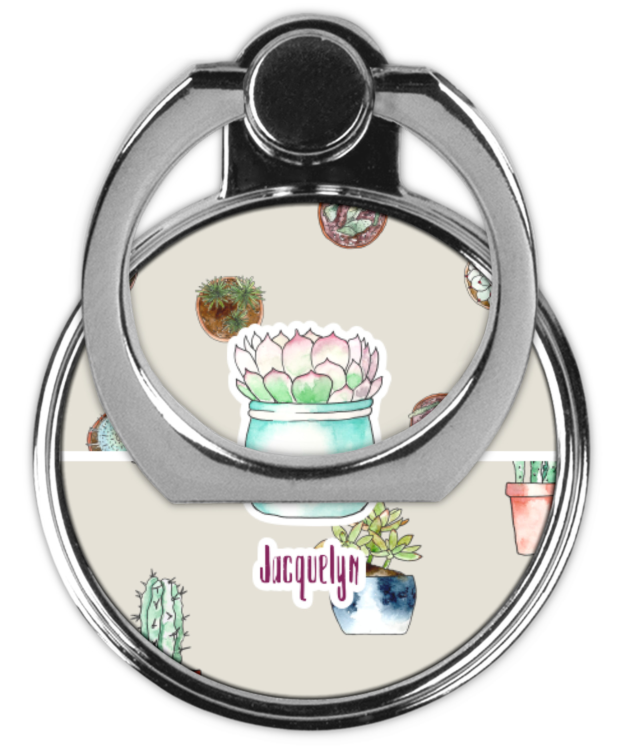 Check out our pop out rotating ring stand! Once attached, this simple little gadget will change your life!