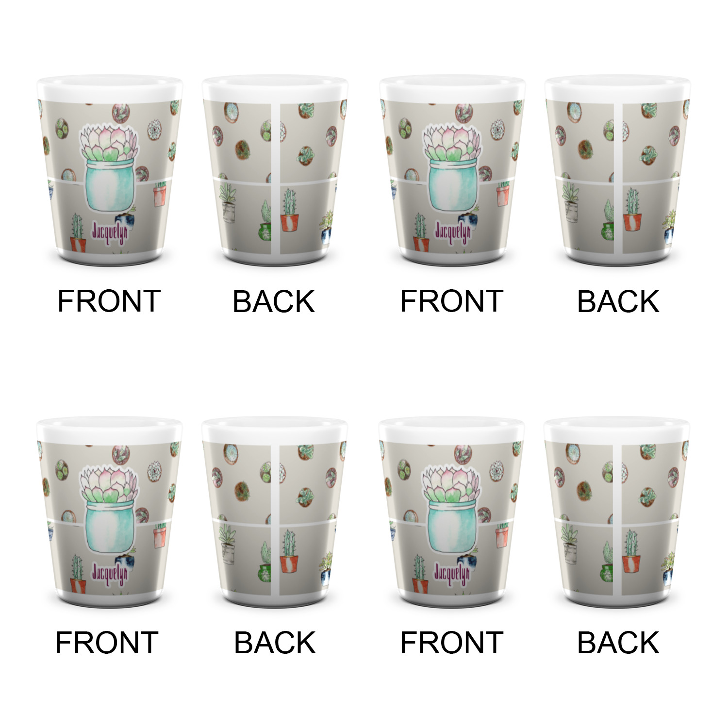 Made from ceramic these shot glasses are printed in full color with the design of your choice. These are a standard 1.5oz size and stand 2.25" tall. Available in a full white ceramic or a two-tone with a black color inside the shot glass. Buy a single or a set of 4, all of which can be designed separately to get you just what you want and need.