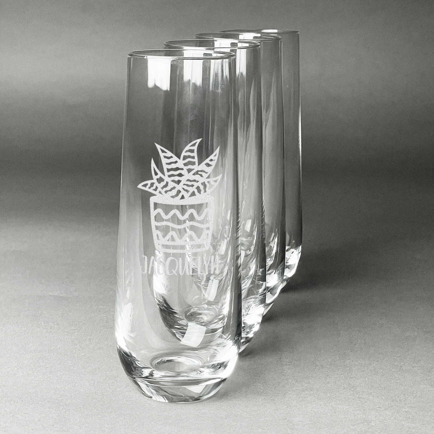 Design your custom stemless champagne flutes and we will then laser engrave your unique design on them for you. Whether they are a special gift for a bride and groom, for your New Years Eve party, or a bachelorette party you are sure to be able to add a custom personalized touch to make them perfect for the occasion.