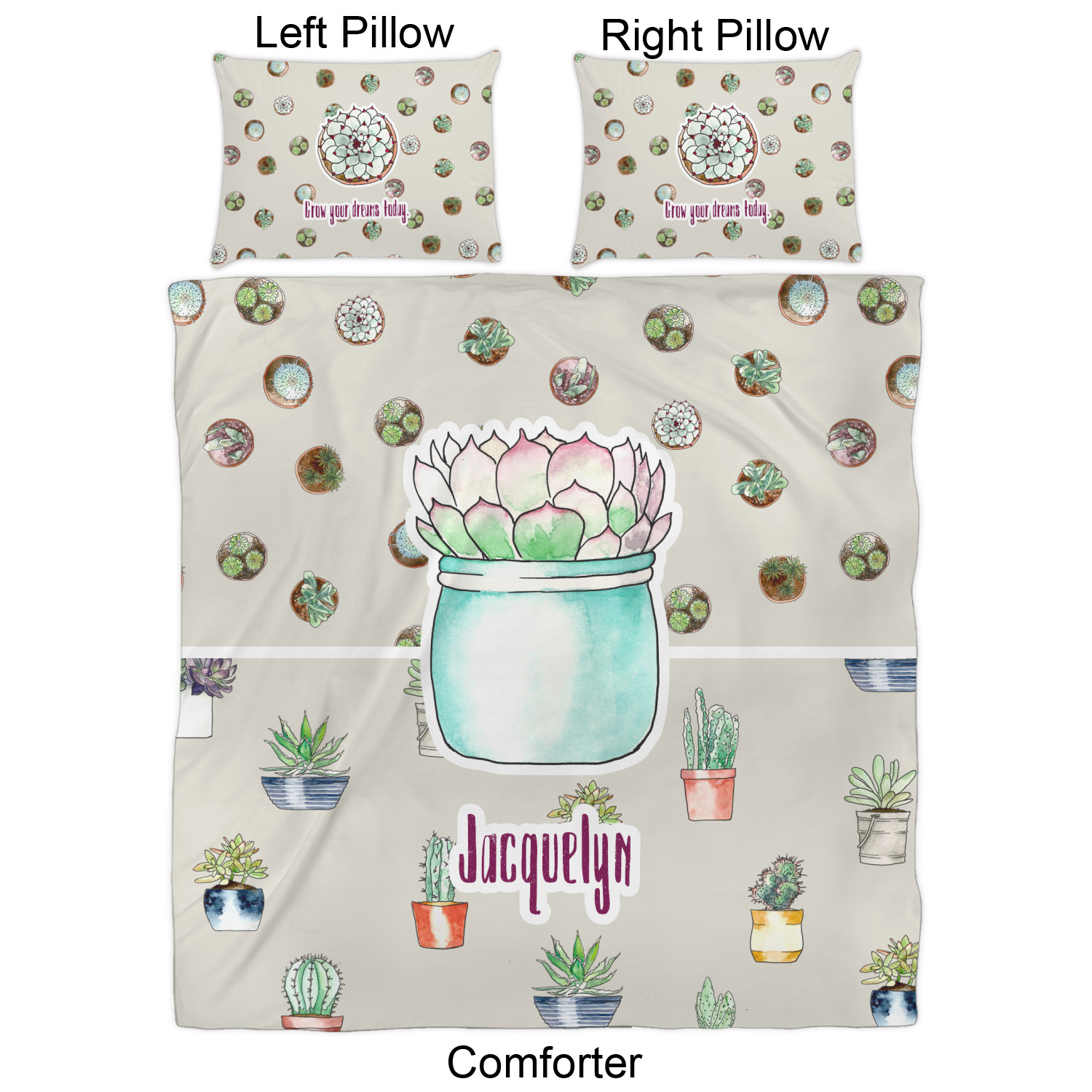 We have hundreds of different design templates for you to choose from Each design can be customized to your exact specifications. Not only can you customize the comforter, but you can also customize each pillow sham e.g. for a queen comforter set you have have Mr & Mrs pillow shams with the last name on comforter.