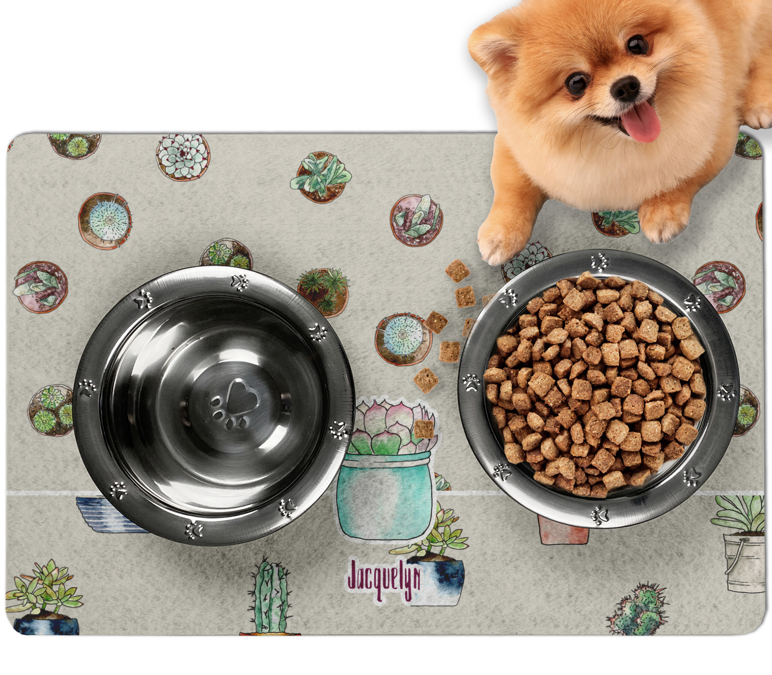 This dog bowl mat, fabricated from polyester, proudly displays your customized design on its top, while its bottom includes a non-slip rubber. This feature allows it to remain firmly in place, even when your dog spills his/her water. With 3 sizes available (18" x 12", 24" x 18", 30" x 24"), the pet food mat has ample space for both a food and water bowl for any sized dogs. Though specified for dogs' use, these mats are also a splendid option for cats.