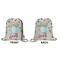 Our drawstring backpacks are available in 3 sizes. Small is approx 15in tall by 13in wide. Medium is approximately 18in tall by 17in wide. Large is 23in tall and 19in wide.