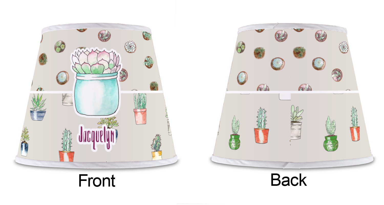 The base of this lampshade is 12 inches in diameter, and the top spans 8 inches in diameter. The total height of the lampshade is 10 inches. The angled nature of this custom lampshade concentrates the light, making it ideal for smaller spaces. This lampshade is made of matte, polyfilm, and displays your customization in its middle. The top and bottom of this colorful lamp shade are lined with a white fabric ribbon (which can be replaced with black inside the design studio) which frames your design and creates a sophisticated finish. As an UNO fitter lampshade, this unique lamp shade will fit a variety of bases.