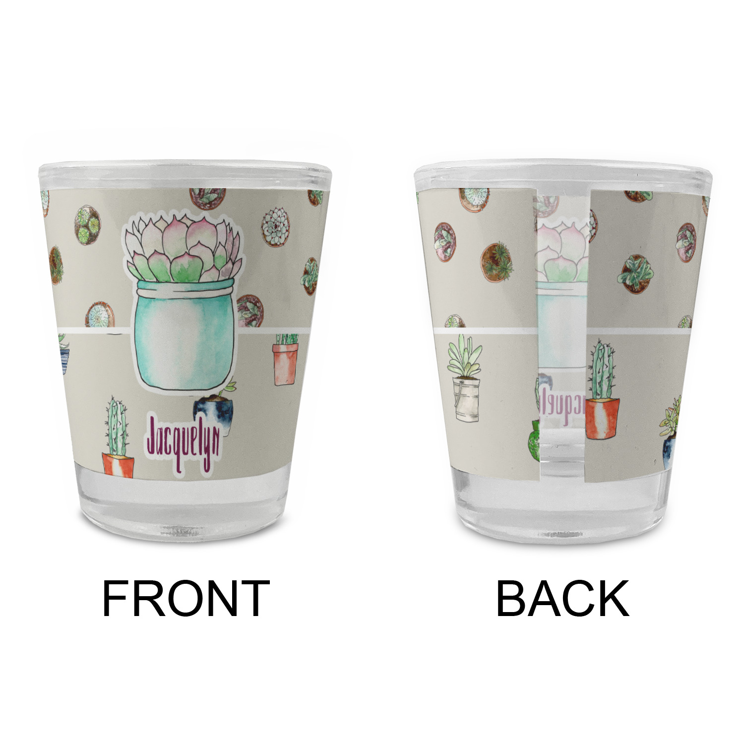 Made with frosted glass, these shot glasses are printed in full color with the design of your choice. They are a standard 1.5oz shot glass and are 2.4" tall. The print is wrapped around the shot glass in a full wrap and boldly displays your customization.