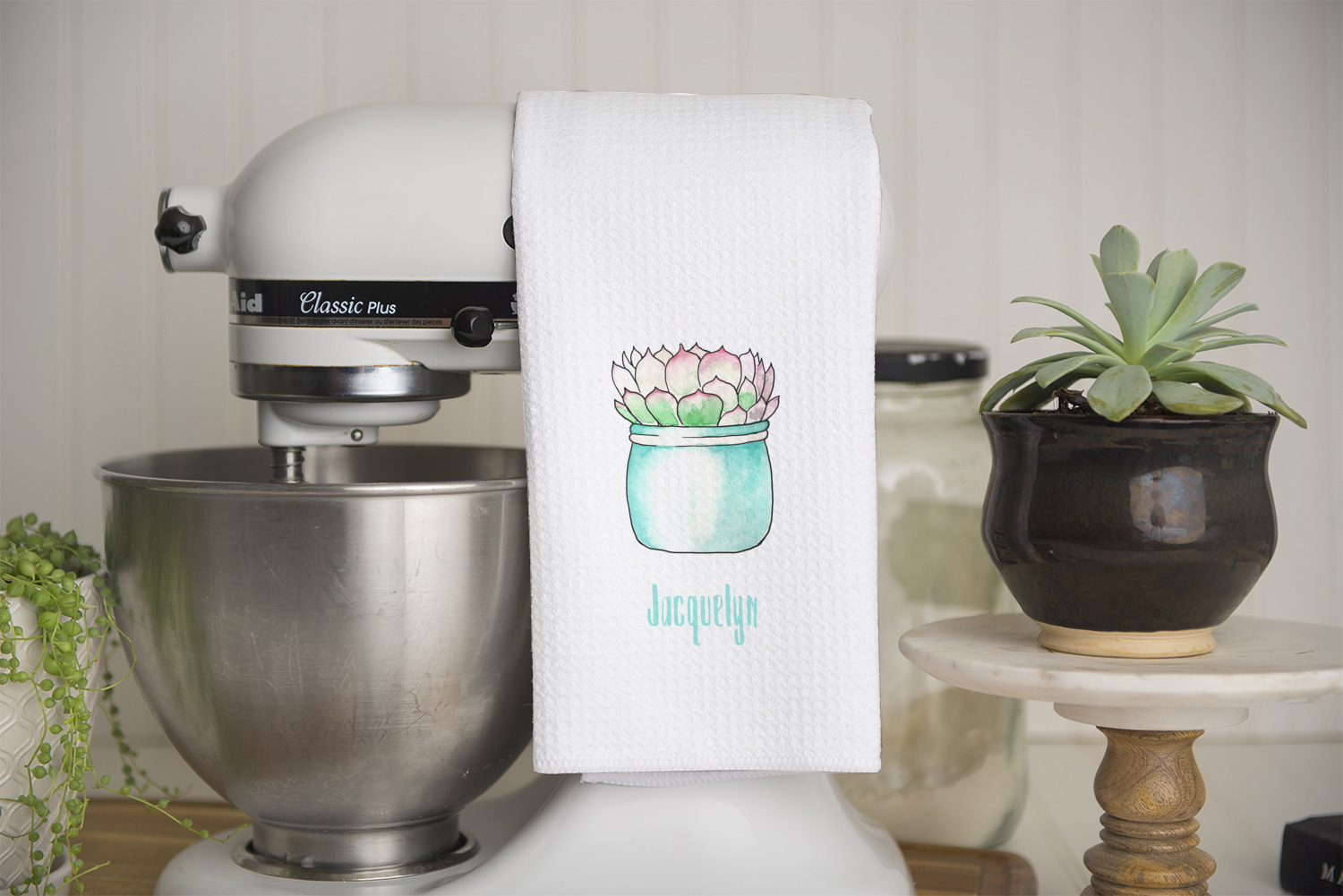 Personalized kitchen towels are pretty and practical kitchen décor accents ideal for holiday dinners and other special occasions! Customize one of our many designs or create your own with our custom design template.