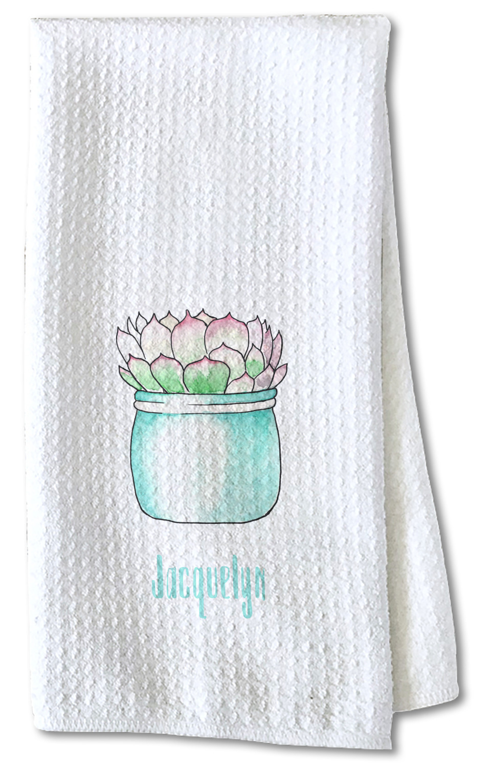 Each waffle weave kitchen towel is approximately 16 x 24 inches with your design printed on one side and the back is white.