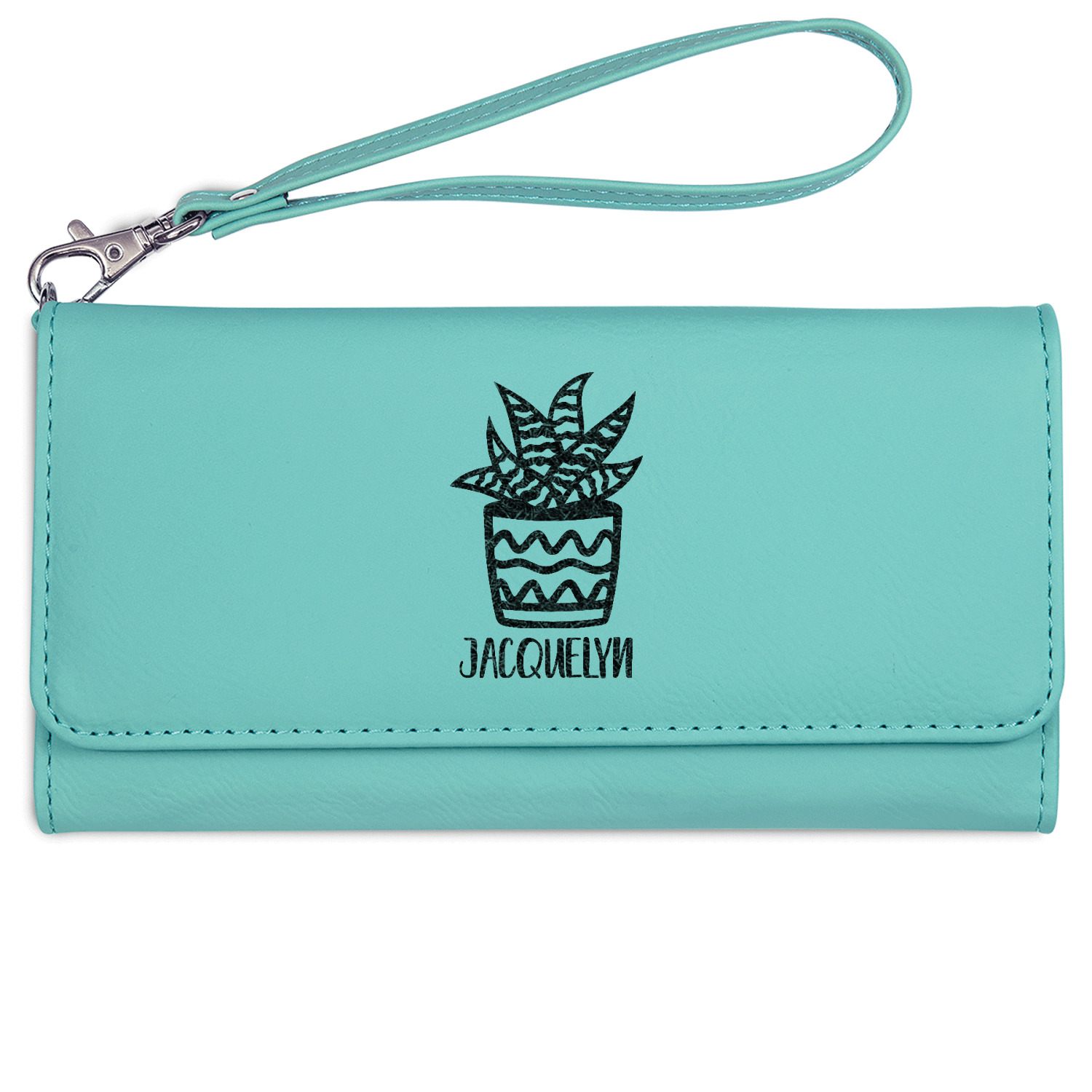 These personalized ladies leather wallets are available in 2 colors - rawhide / cognac and teal.